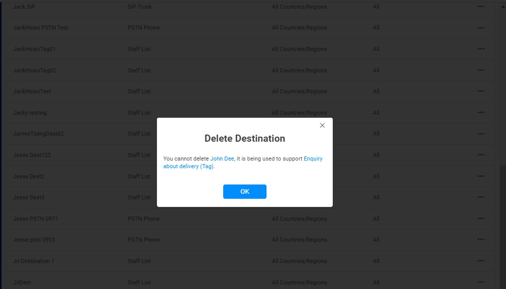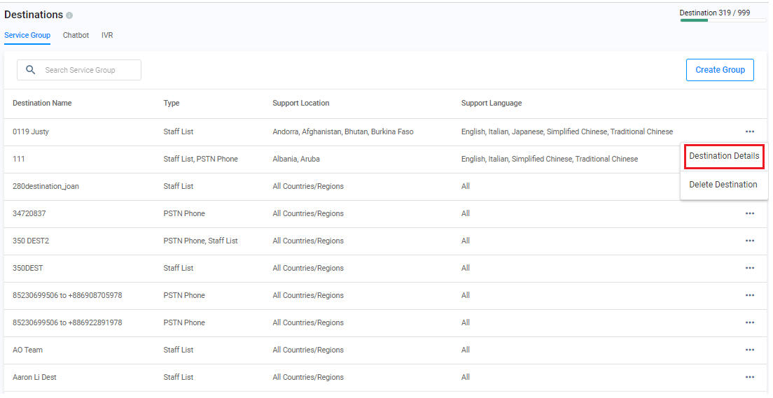 | Staff List | Staff accounts created in CINNOX are listed as a destination endpoint to handle visitor calls and chat enquiries. |