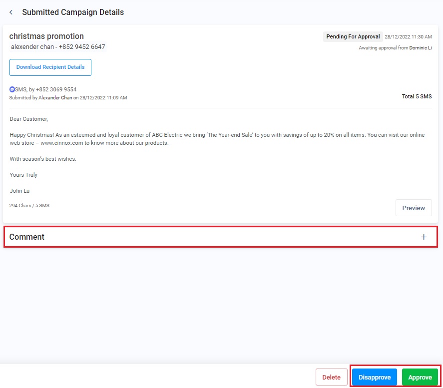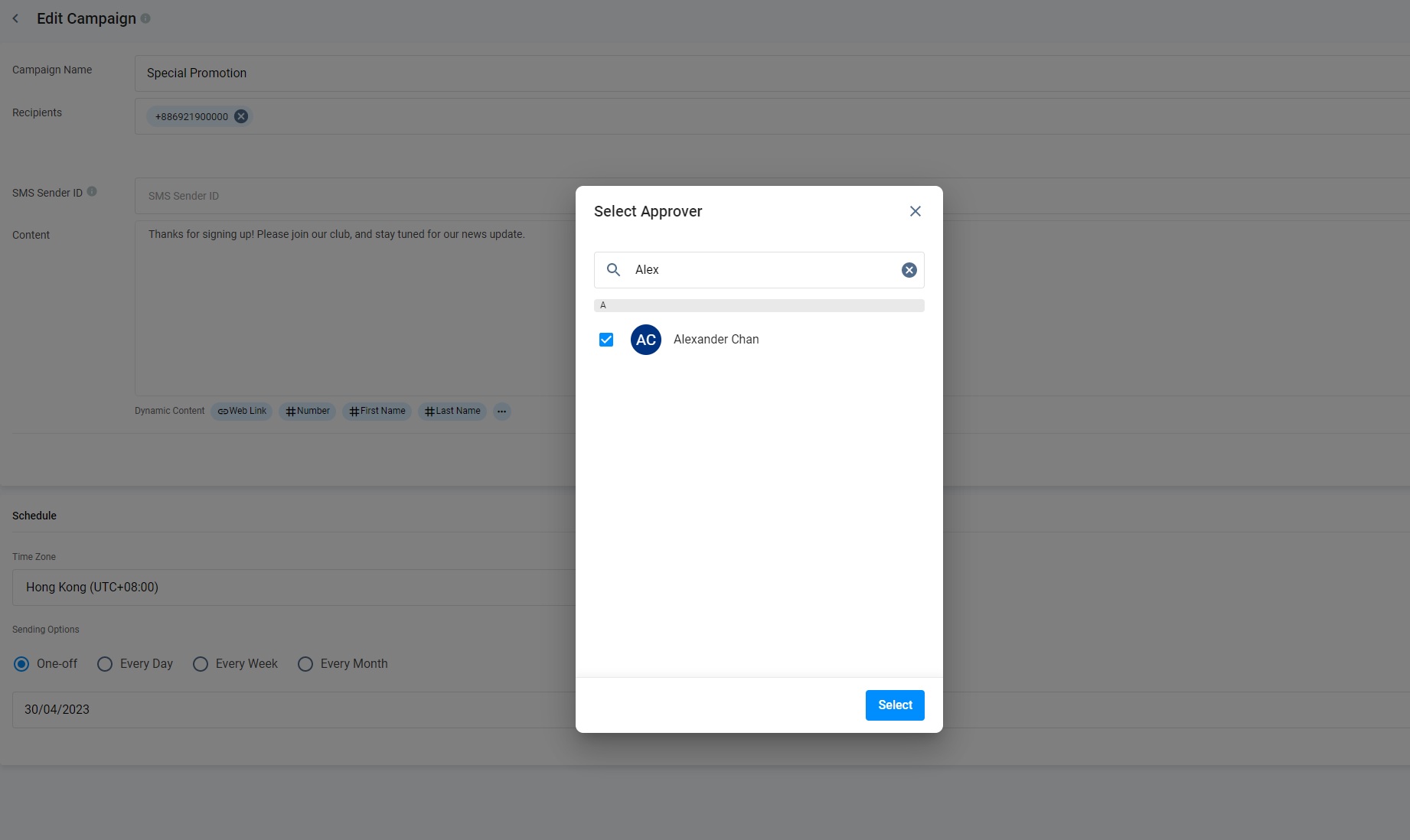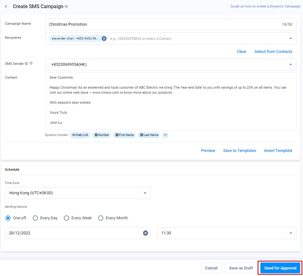 Click Send for Approval, then select Approver. Otherwise, click Save and move the campaign to the Draft Campaign list.