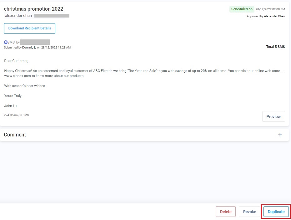 SMS Dynamic Campaigns let you send the same message to multiple target recipients. You may also personalise each recipient's message using variables like weblinks, first and last names, or other customisations on your template.
