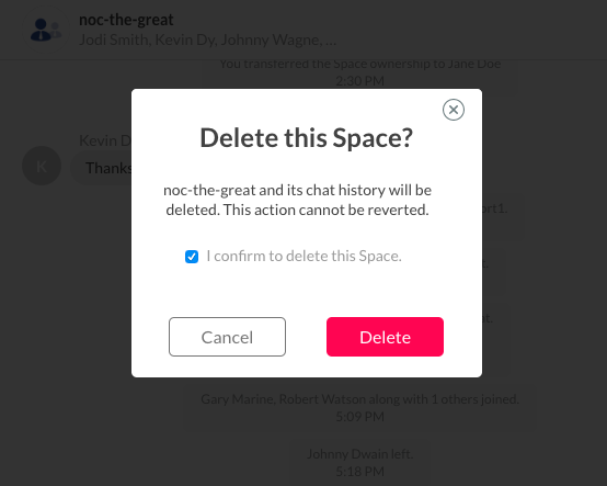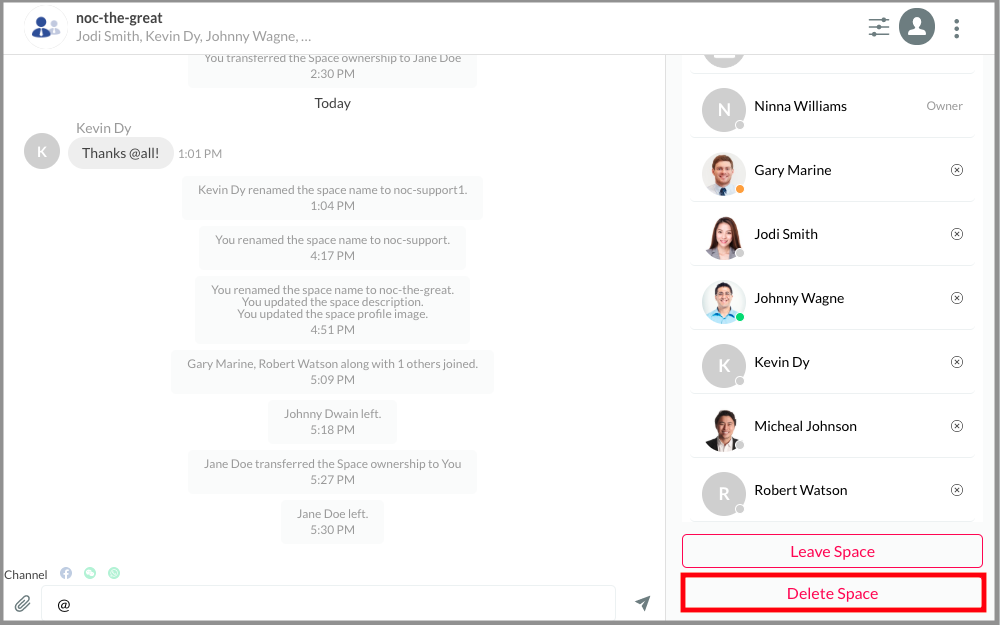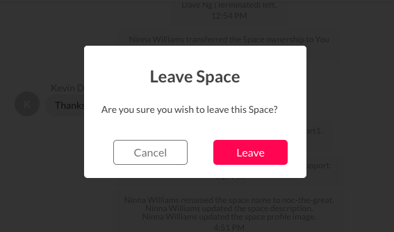 As a Space owner/member, you can leave and exit from a Space.