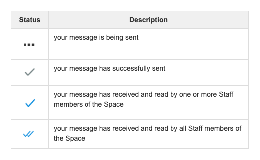 During chat conversations, the following indicators let you know the status of the messages you sent in the Space group chat: