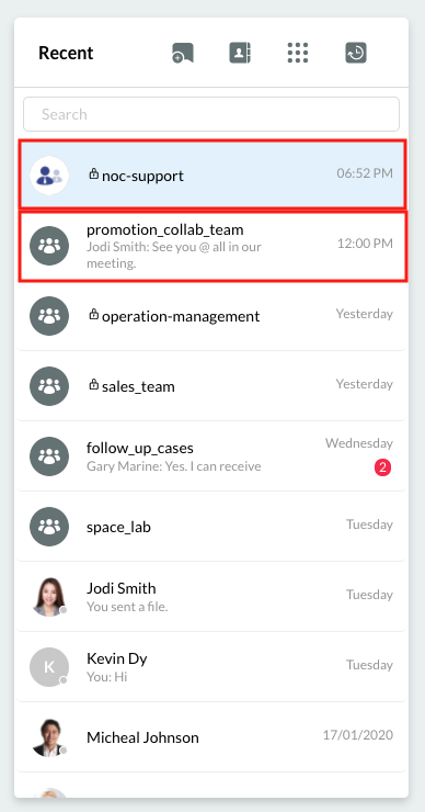 The newly created Public Space will appear in the Recent Connection area of your Workspace's Utility panel. It will also notify the added staff members that they have joined Space.