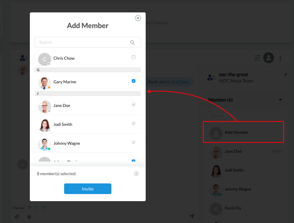 As a Space owner/member, you can add members to your Space: