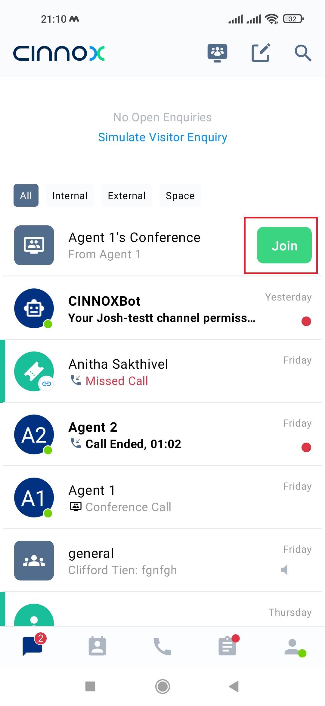 1-to-1 enquiry call to the conference: Invite other staff, external contacts or dial phone numbers to join the enquiry discussion with the visitor or customer.