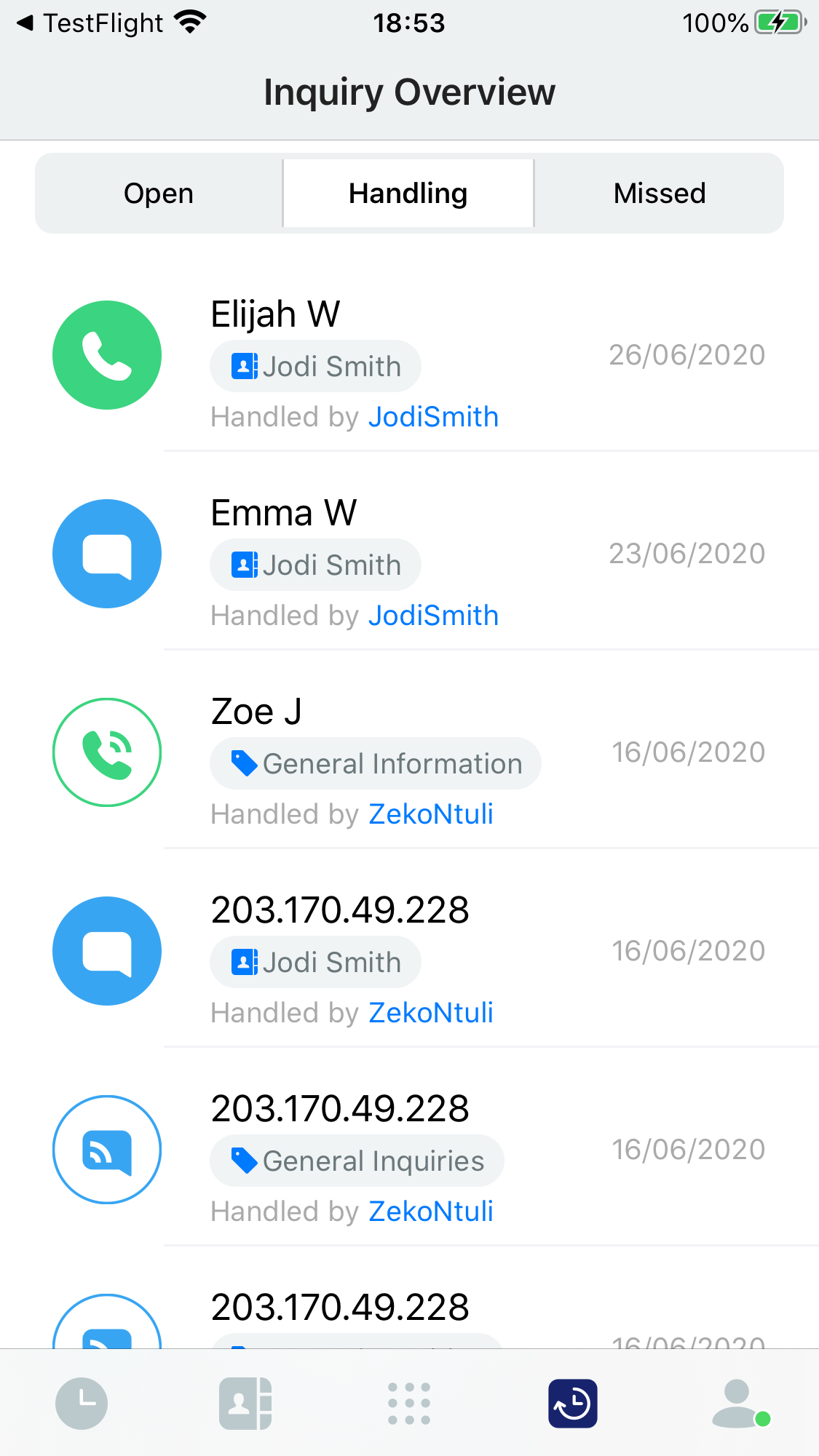 An open enquiry displays in the Enquiry Panel until a staff agent has picked up the enquiry or reached the maximum waiting time.