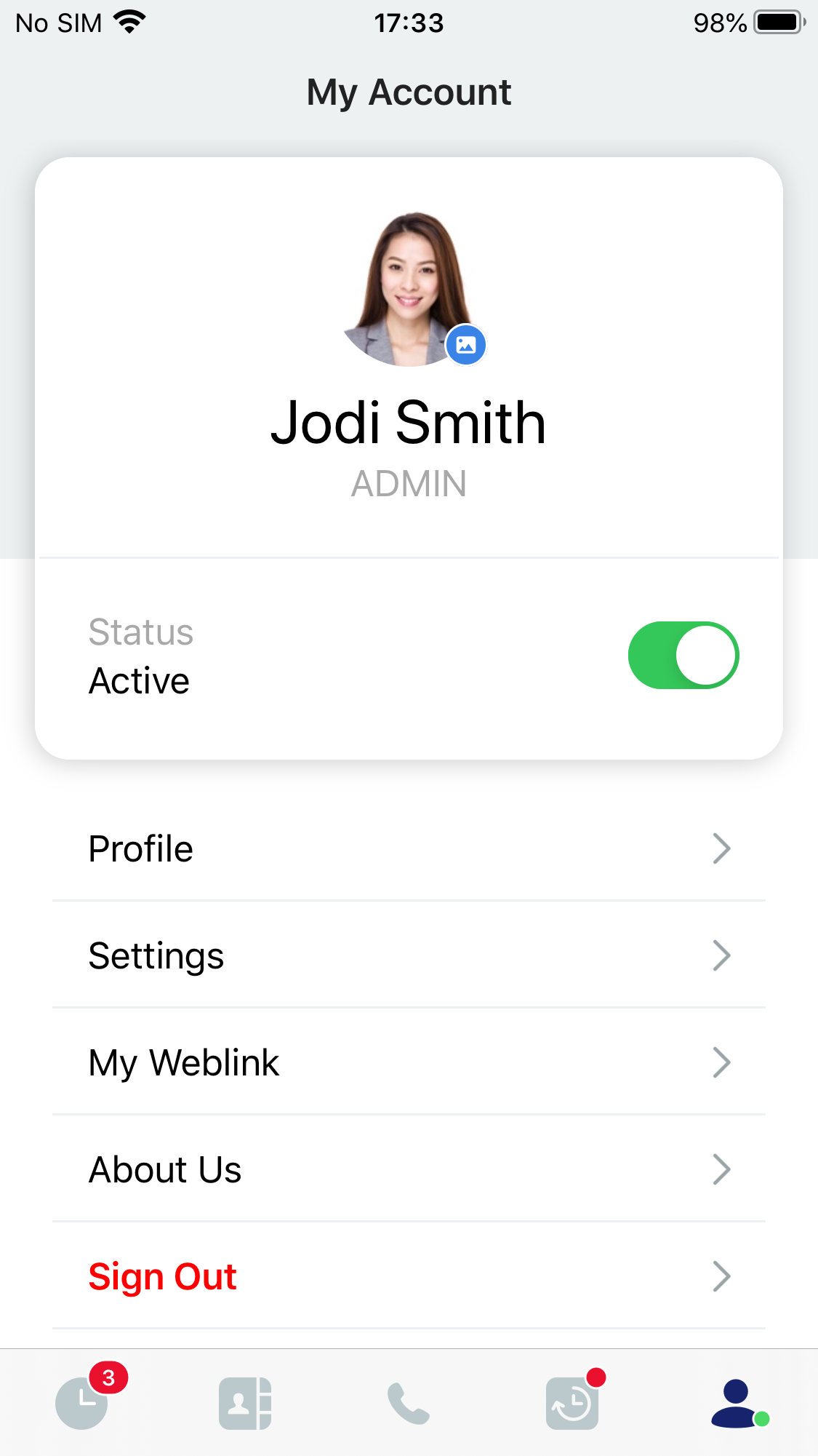 The My Account tab lets you access your profile information, manage your app and notifications, change your password, and log out of the CINNOX service.