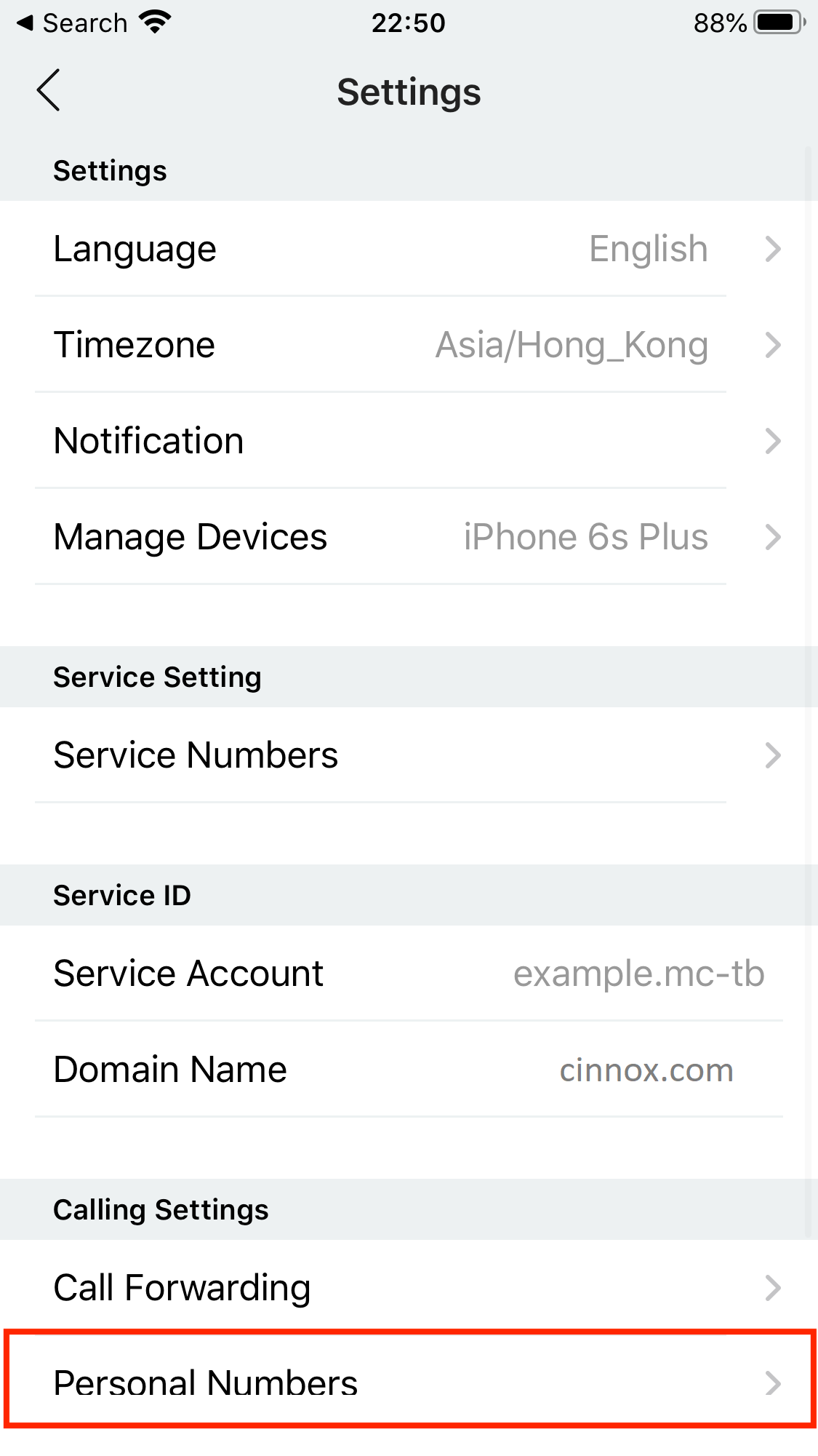 Go to My Account on the menu tab, then tap Settings > Personal Numbers .