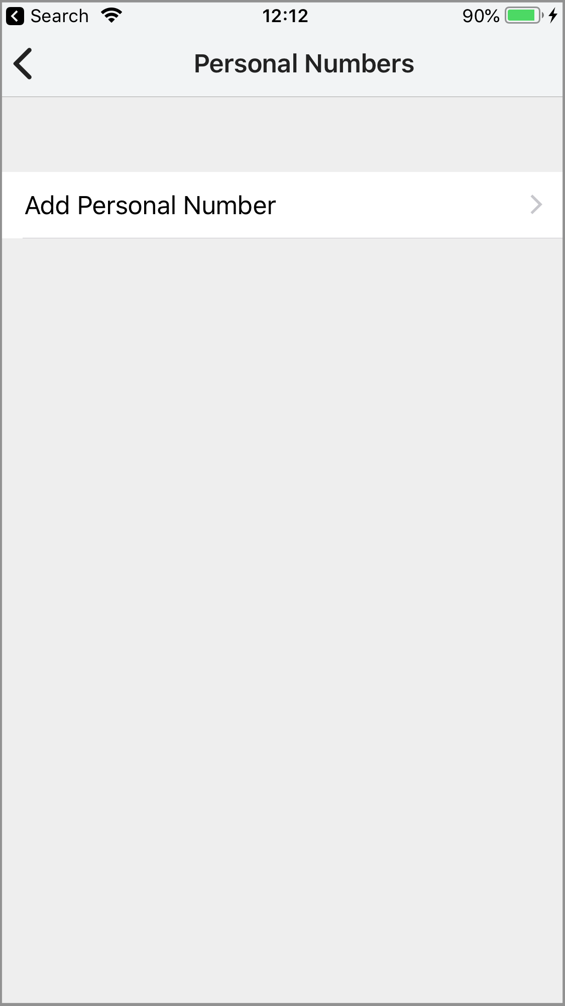 Tap the (+) icon beside Add Personal Number on the Personal Numbers screen.