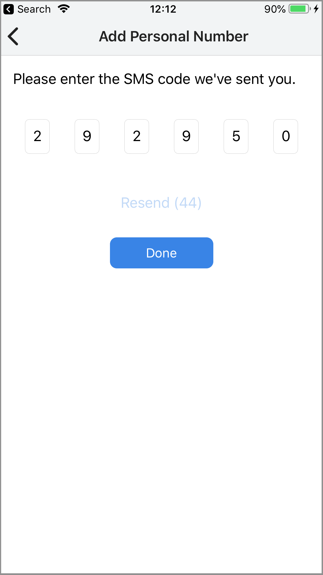 Type in the six-digit verification code sent to the phone number you added, then tap Done. Once the verification code has been validated, the following message will appear: Verification Completed!