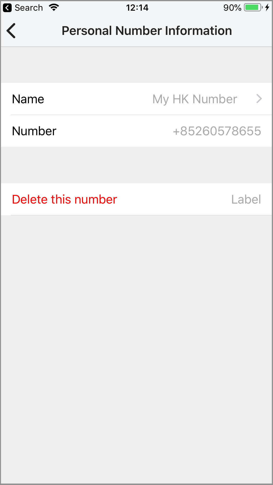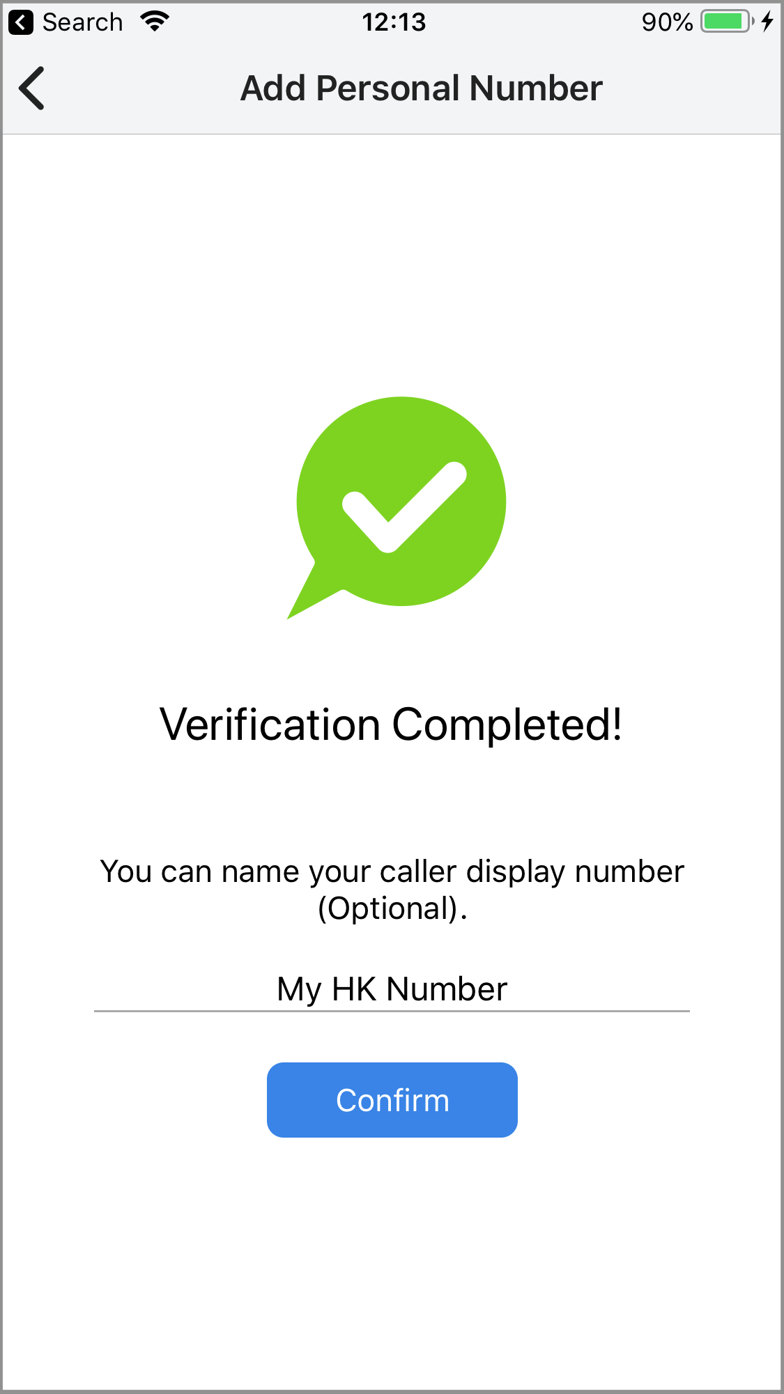 Set a display name (optional) for your newly-added personal number, then tap Confirm.
