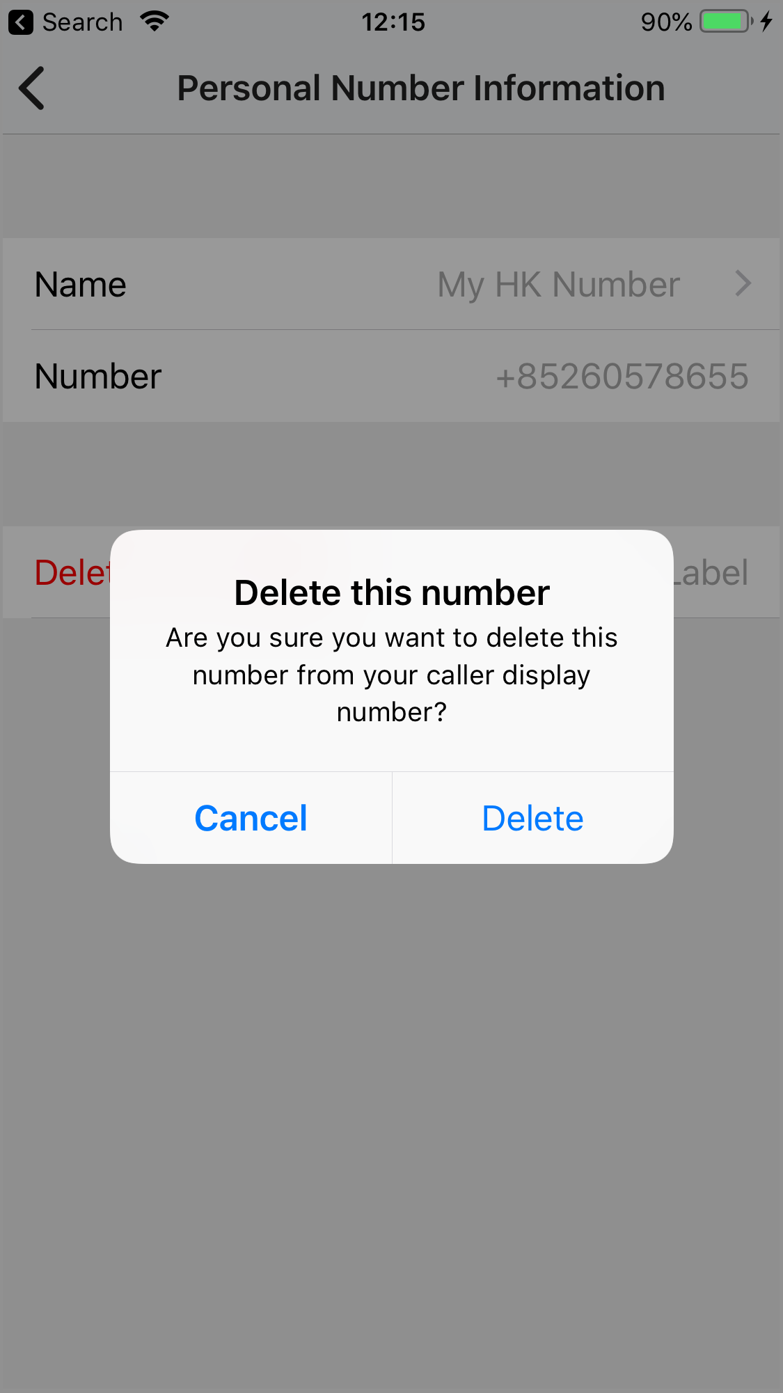 On the Personal Number Information that will appear, tap Delete this number. A pop-up message will appear, asking you to confirm the action.