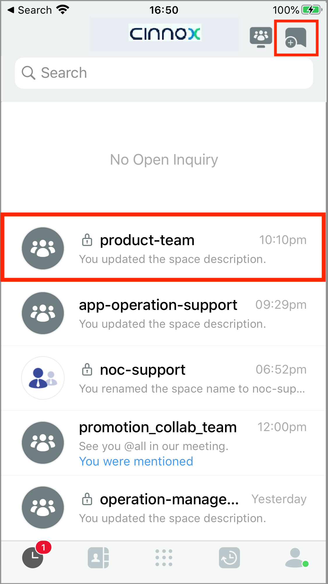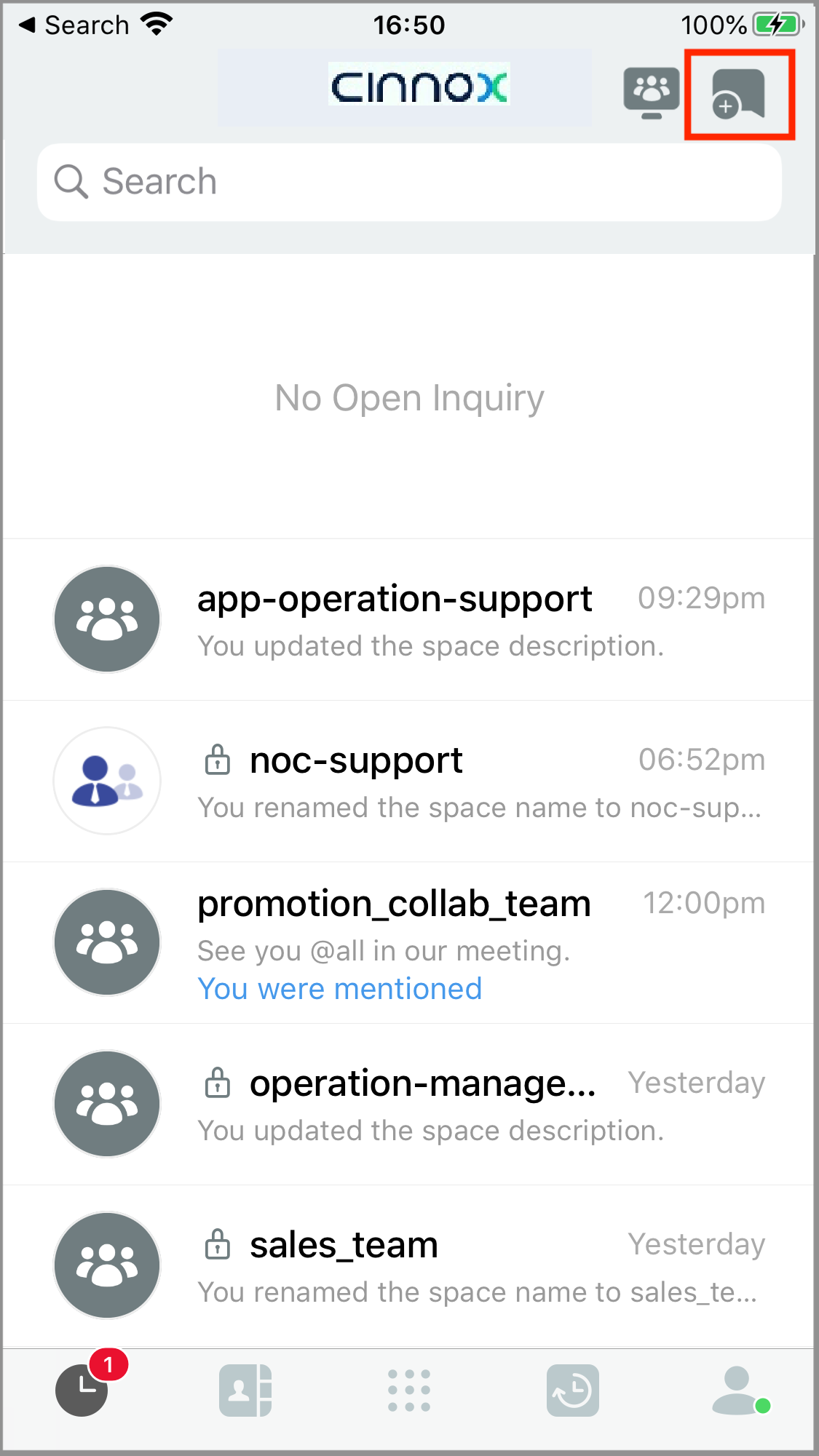 Space is CINNOX's group chat feature designed to facilitate seamless communication among staff members. Whether you're handling customer enquiries, participating in meetings, or engaged in various tasks and activities, Space allows you to stay connected and collaborate effectively.