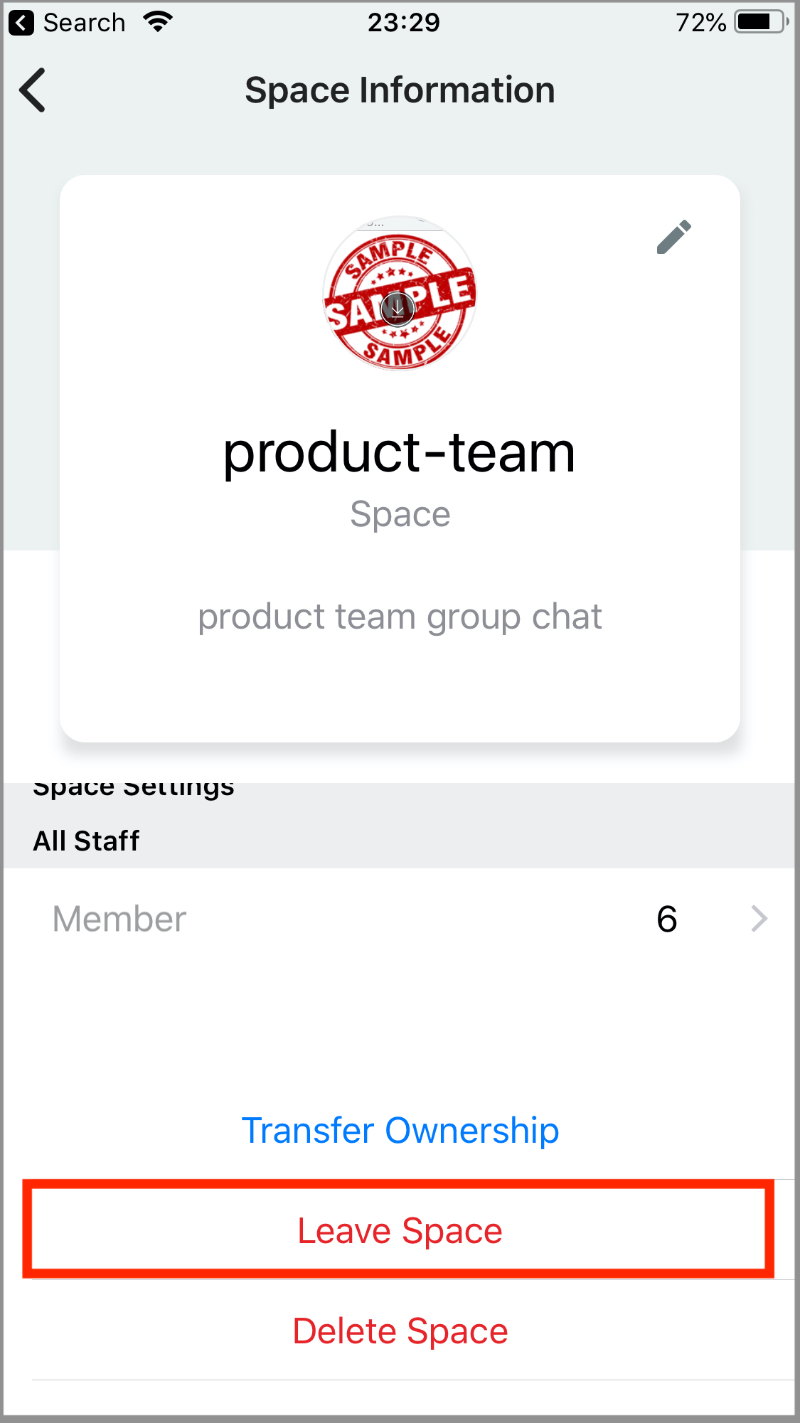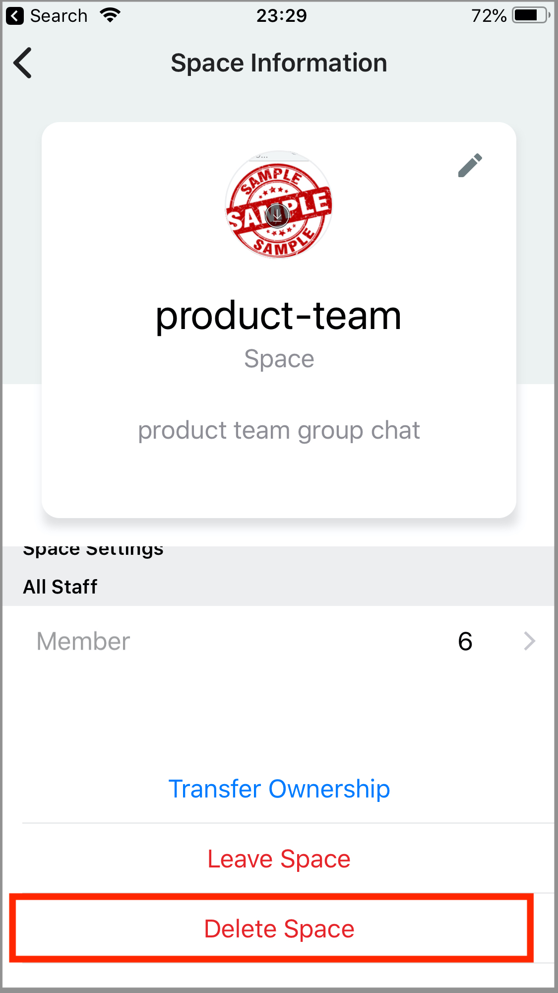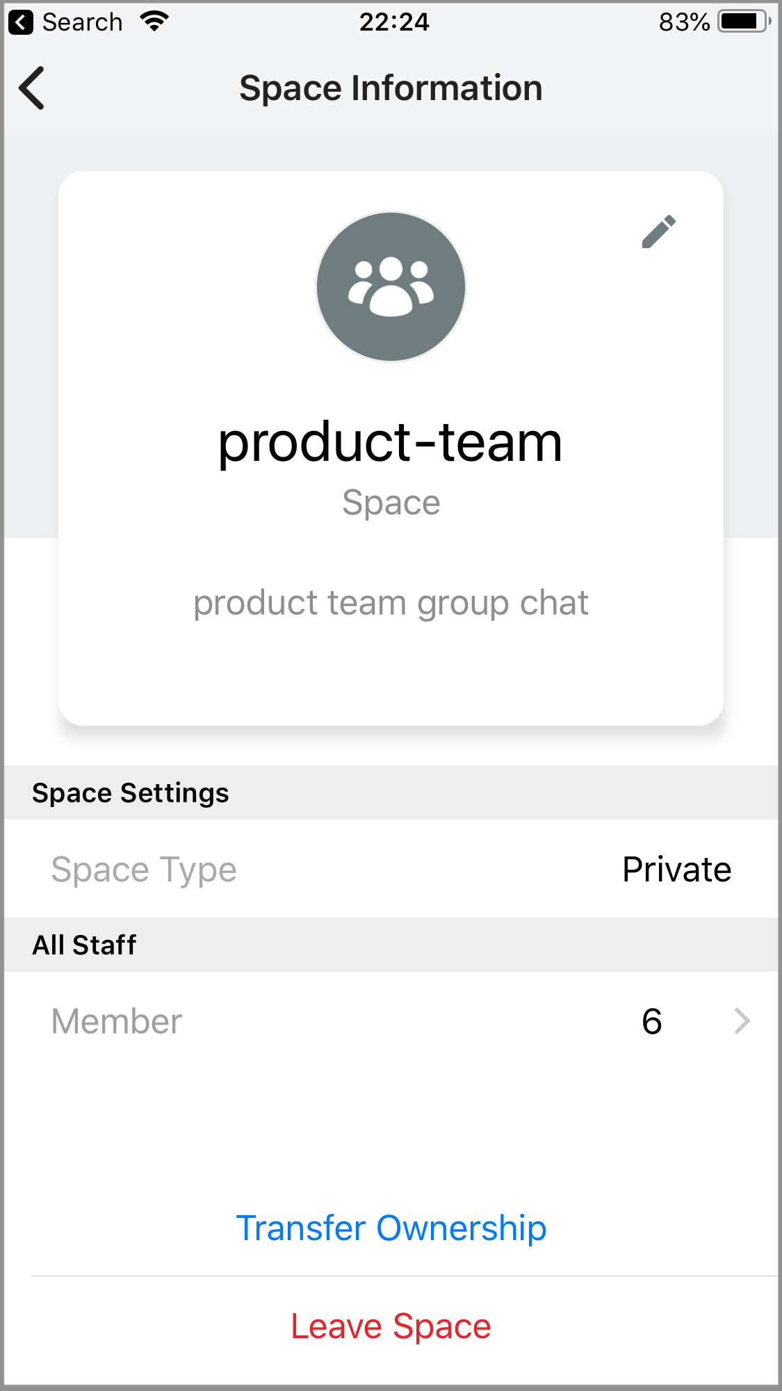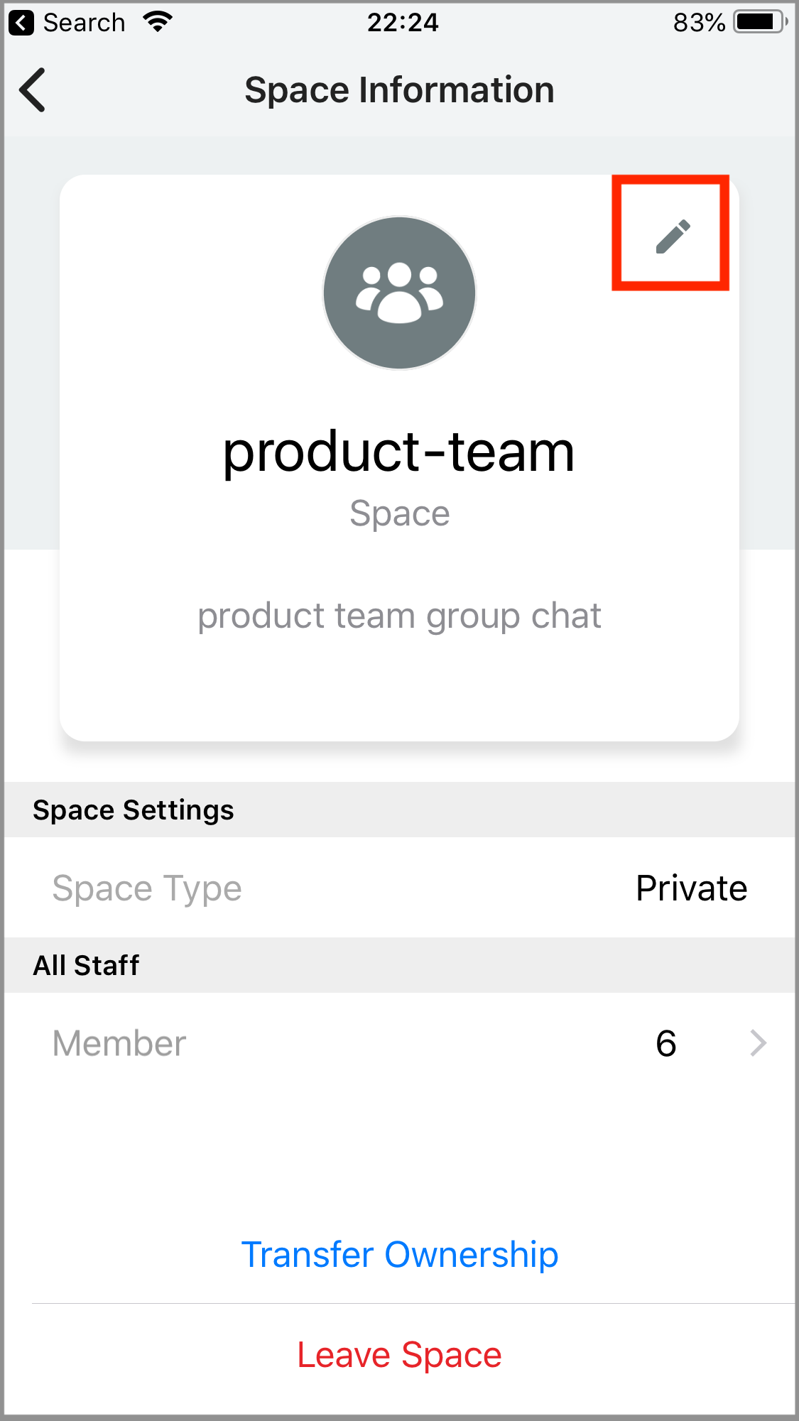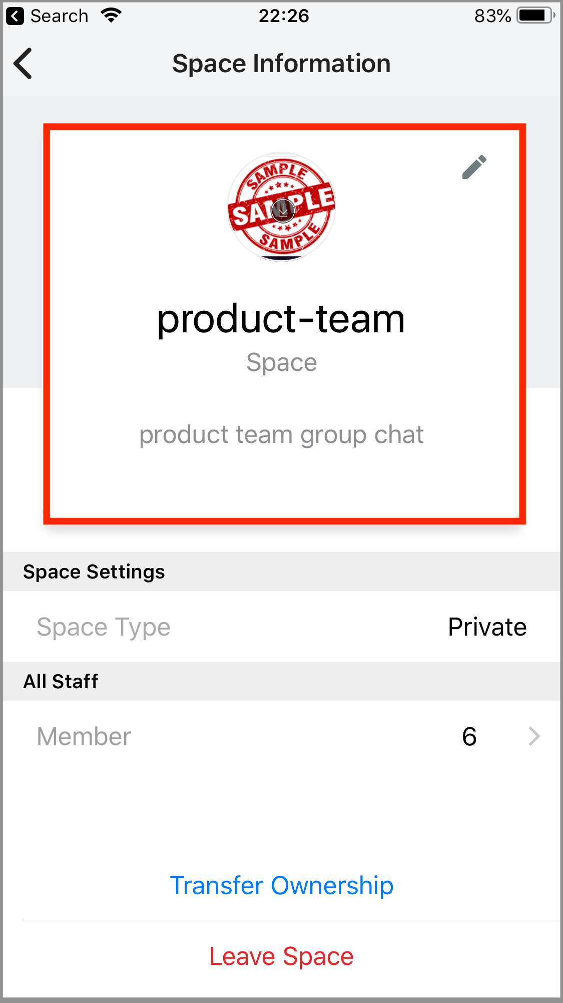 Changes in the name, description, and profile image will be reflected in the Space room information.
