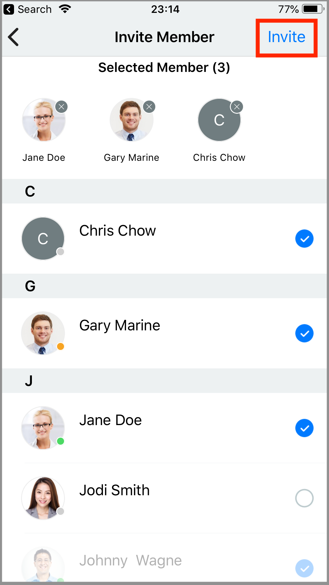 A message will then state that the members were successfully added, and the names of the new members will be added to the member list. The said Space will also display a system message indicating that the Staff members have joined.
