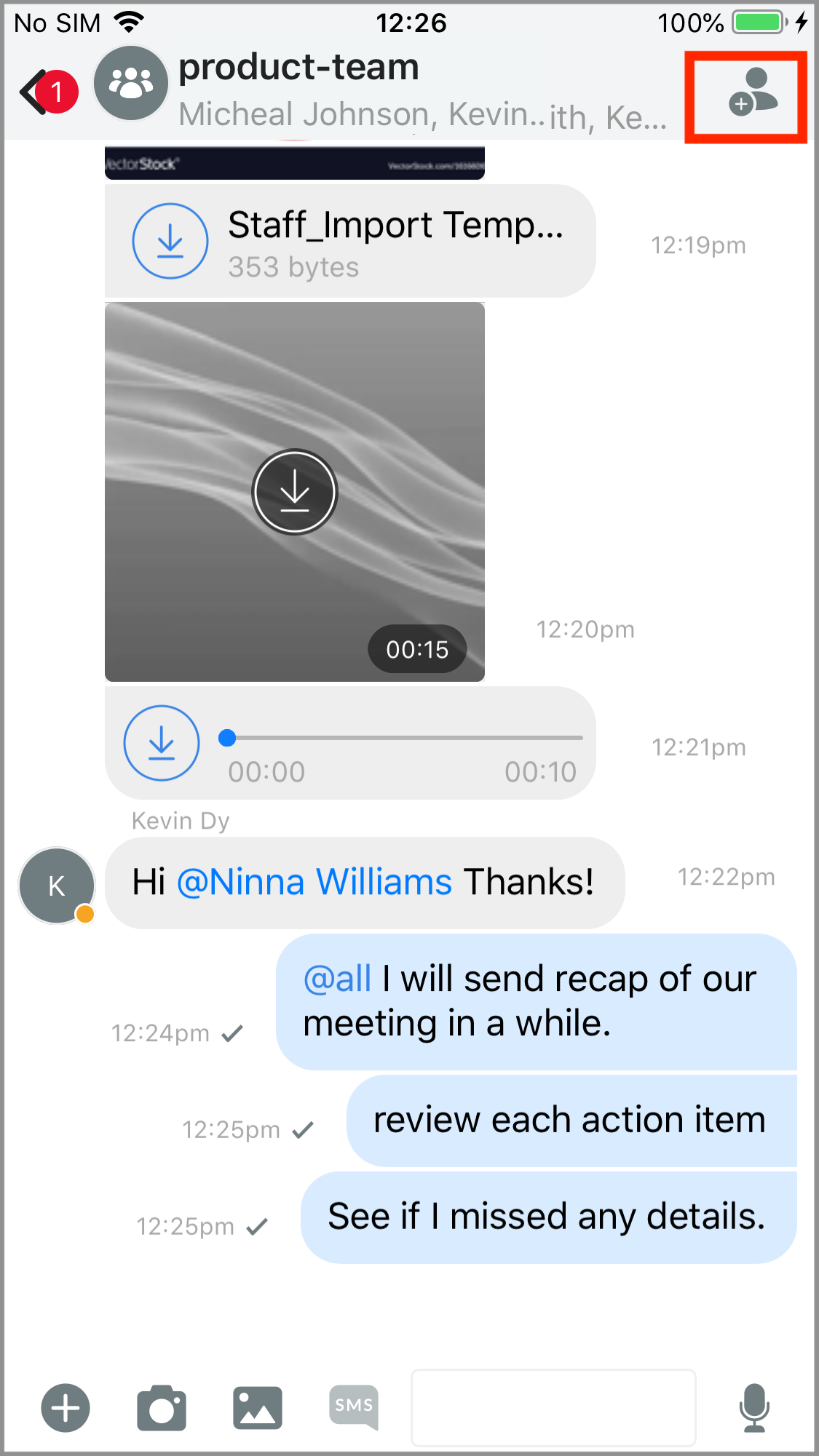 A Staff member can launch a conference call from within the Space. CINNOX will then automatically add the other members of the Space in the conference as participants