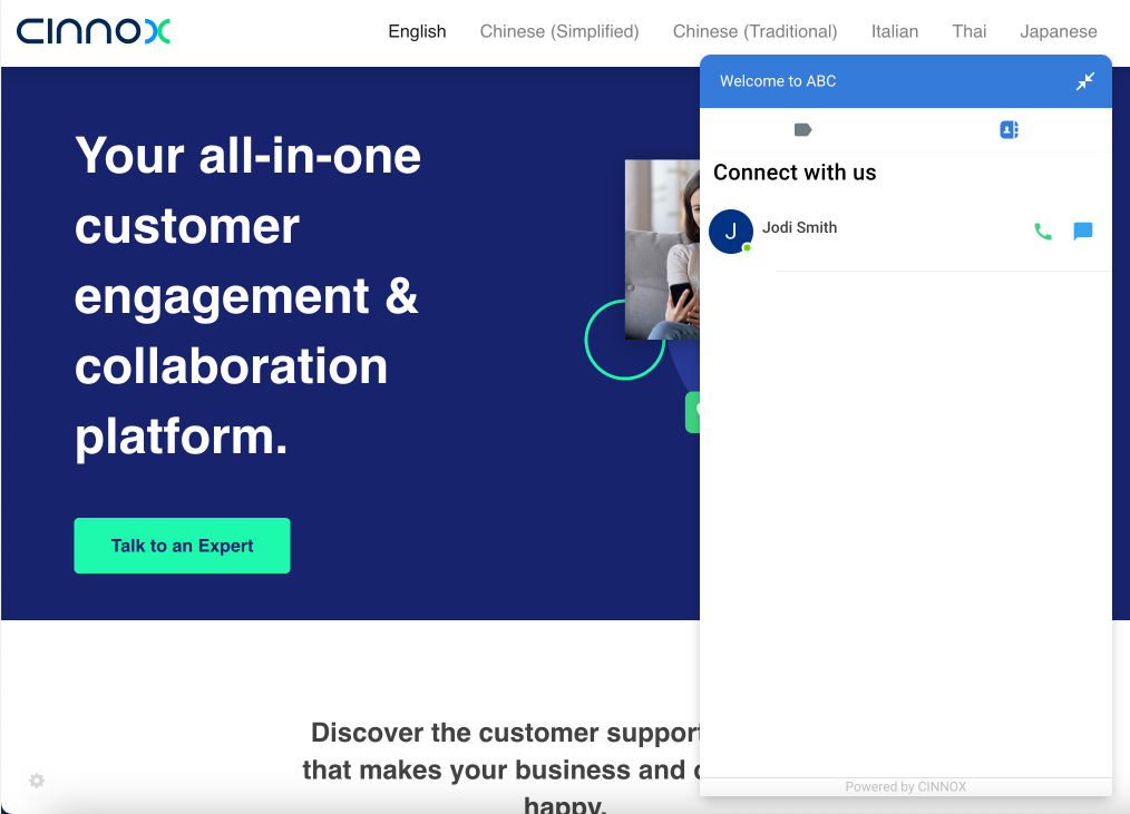 The Widget Display is enabled by default. Once the CINNOX web widget is installed on your web page, it will automatically be displayed so your website visitors can engage with your staff - customer support- via chat or call conversation.