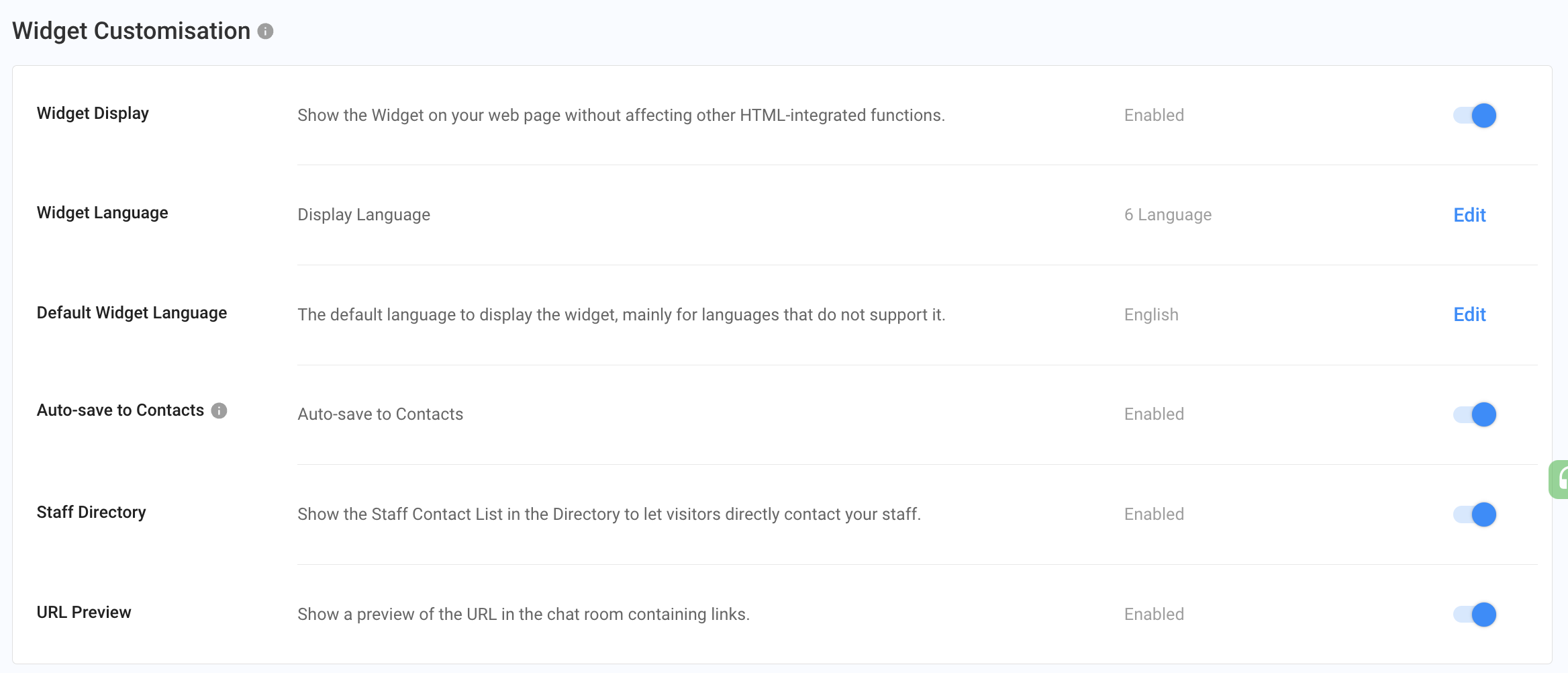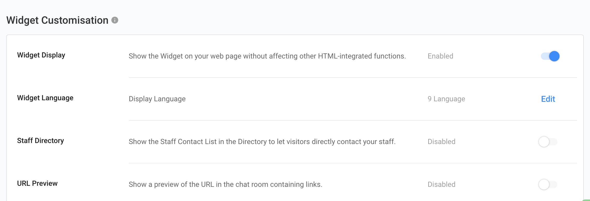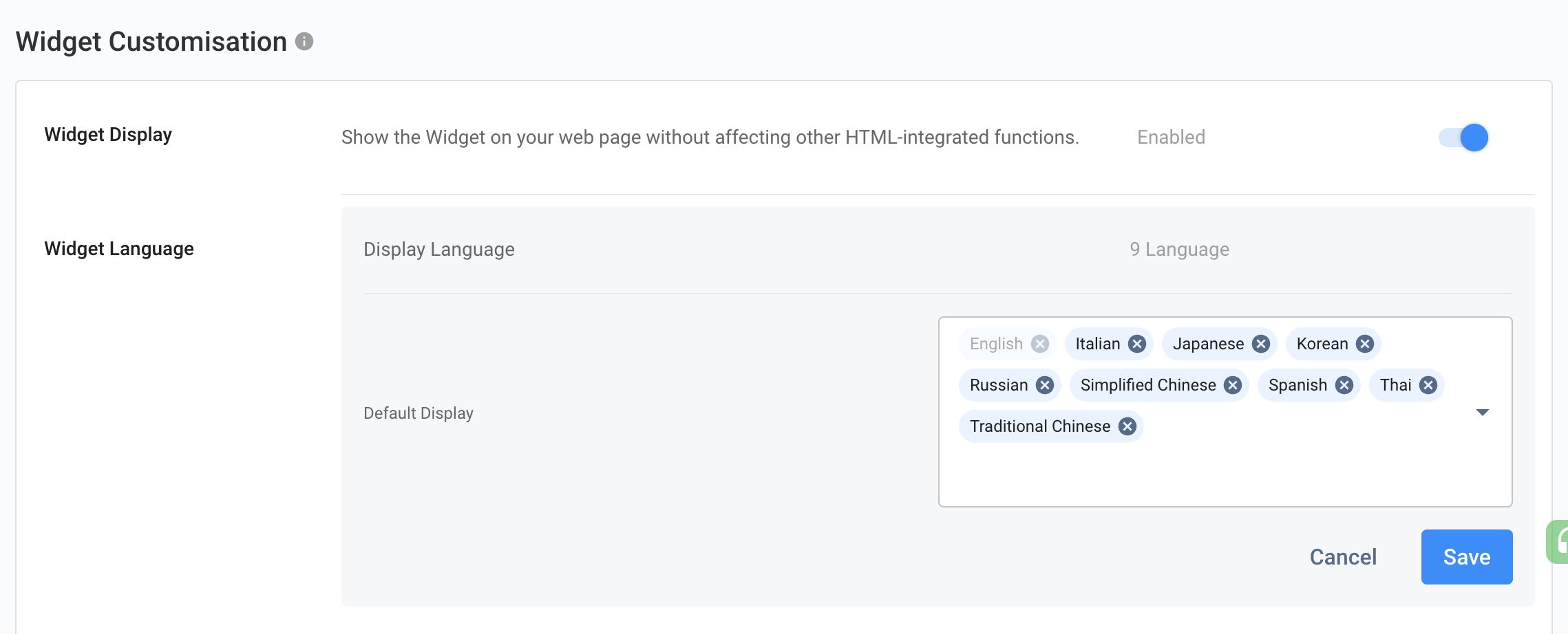 To configure the Web Widget for each selected language, refer to Customise Your Widget for a detailed Guide.