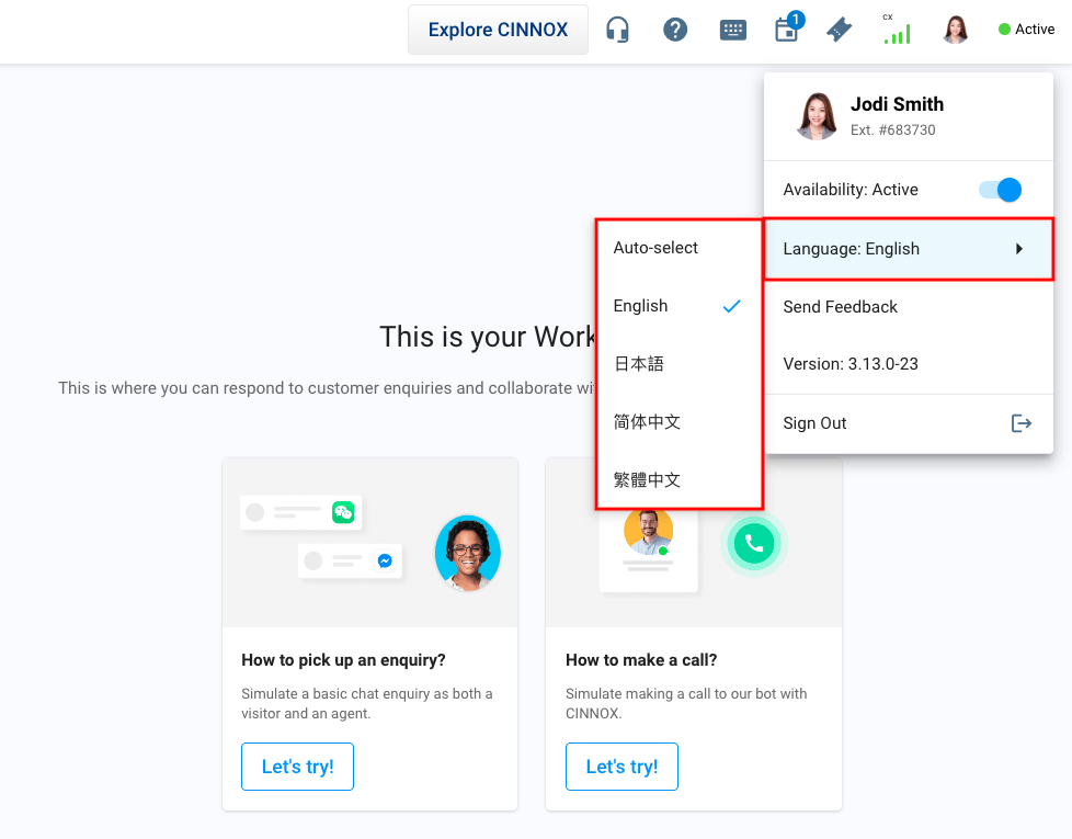 CINNOX provides the following languages in your Web Dashboard and Mobile app.