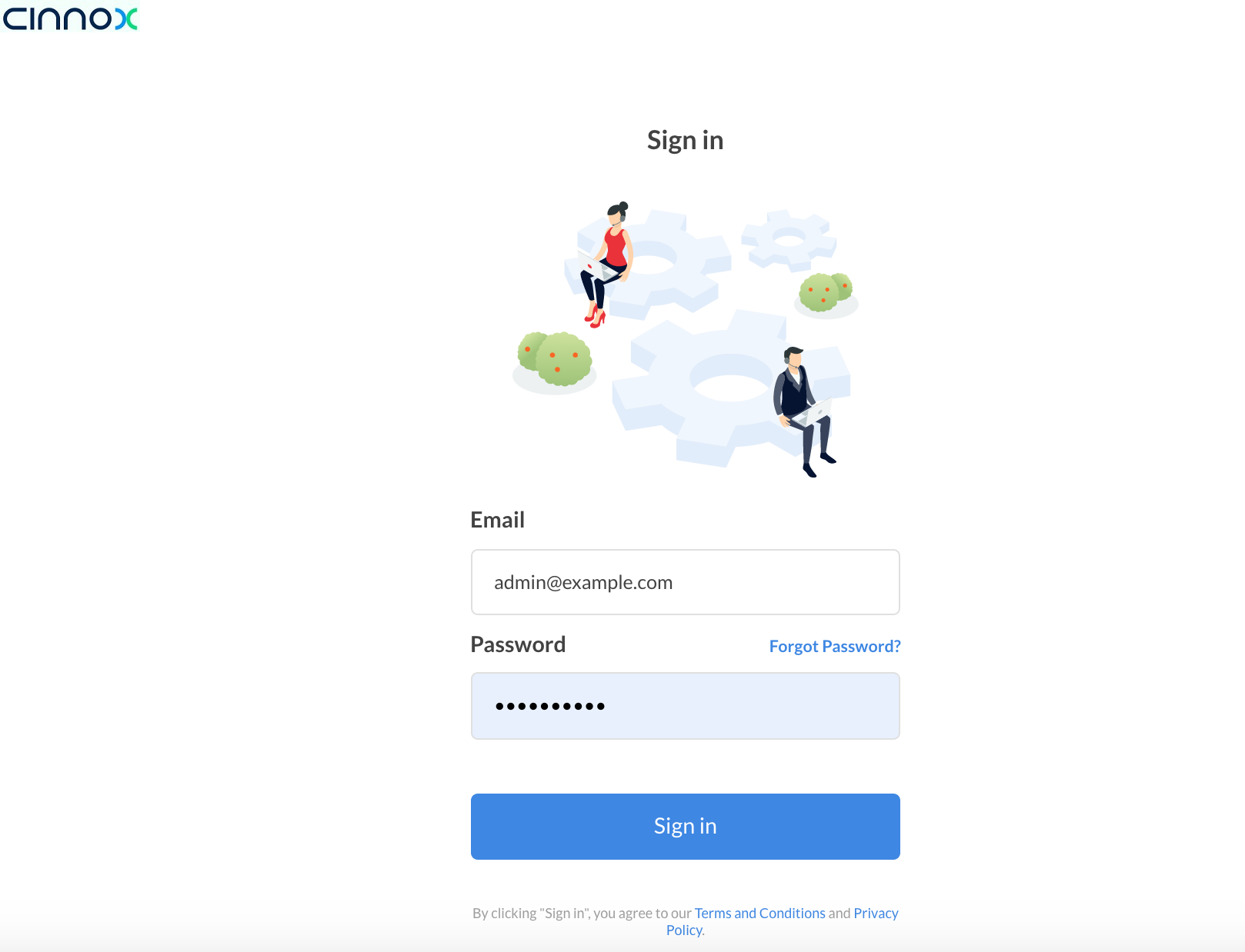 On the CINNOX login page: