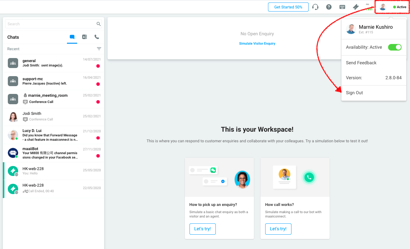 To sign out from the CINNOX Dashboard: