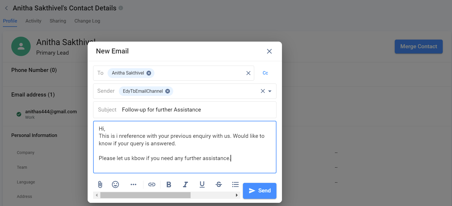 CINNOX offers to email your customer with your latest offers and assistance. Your staff can engage your customers frequently through emails. The Emails sent as enquiries to the customer will be received as emails, and the customer's response was returned as enquiries. In this way, the attending staff can stay connected with the customer.
