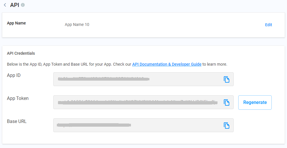 To start sending requests, ensure that you have the Base URL, App ID, and App Token from your CINNOX Service that can be found in your Web Dashboard.