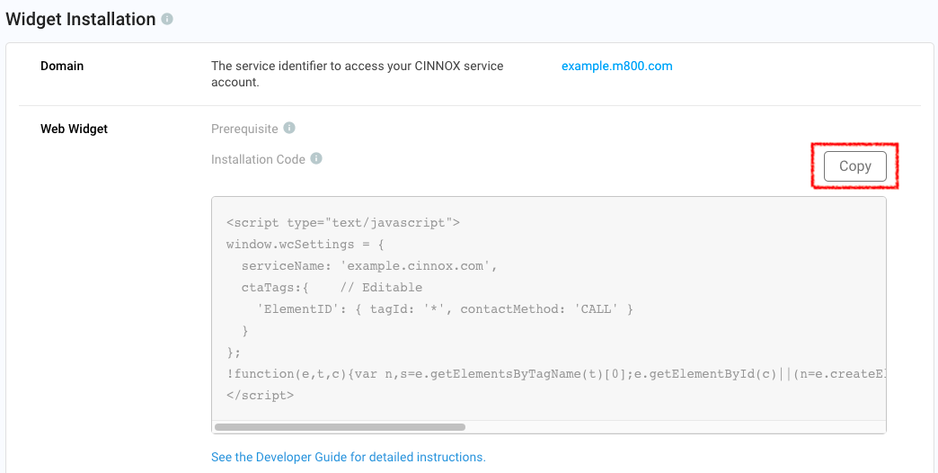 For more information on configuring your CINNOX widget, refer to this Guide's Customising Your Widget section.