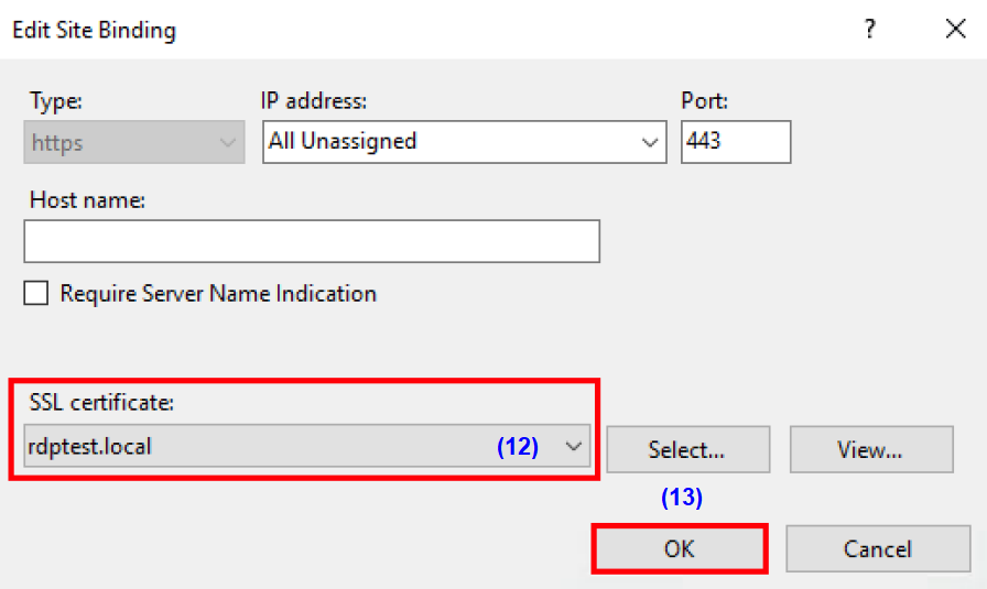 | Select a certificate store: | In the drop-down list, select Web Hosting. (5) Click OK. (6) |
