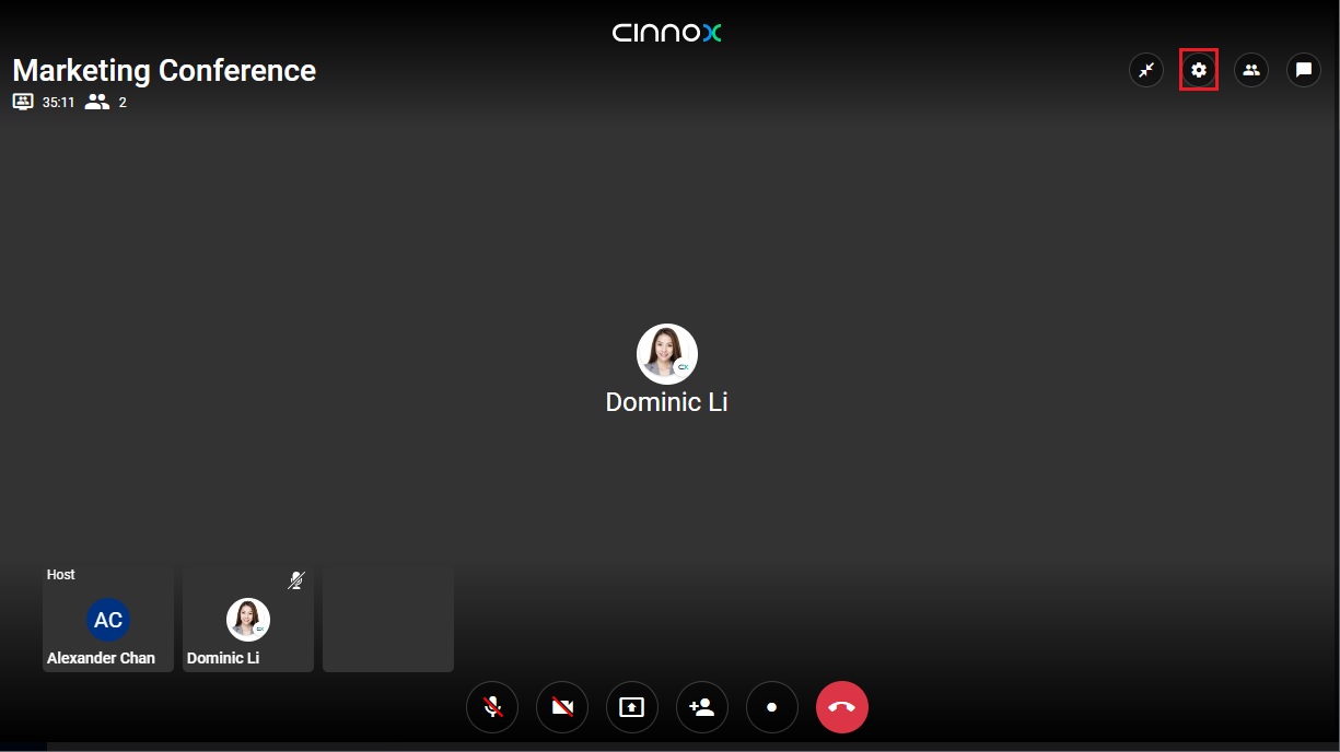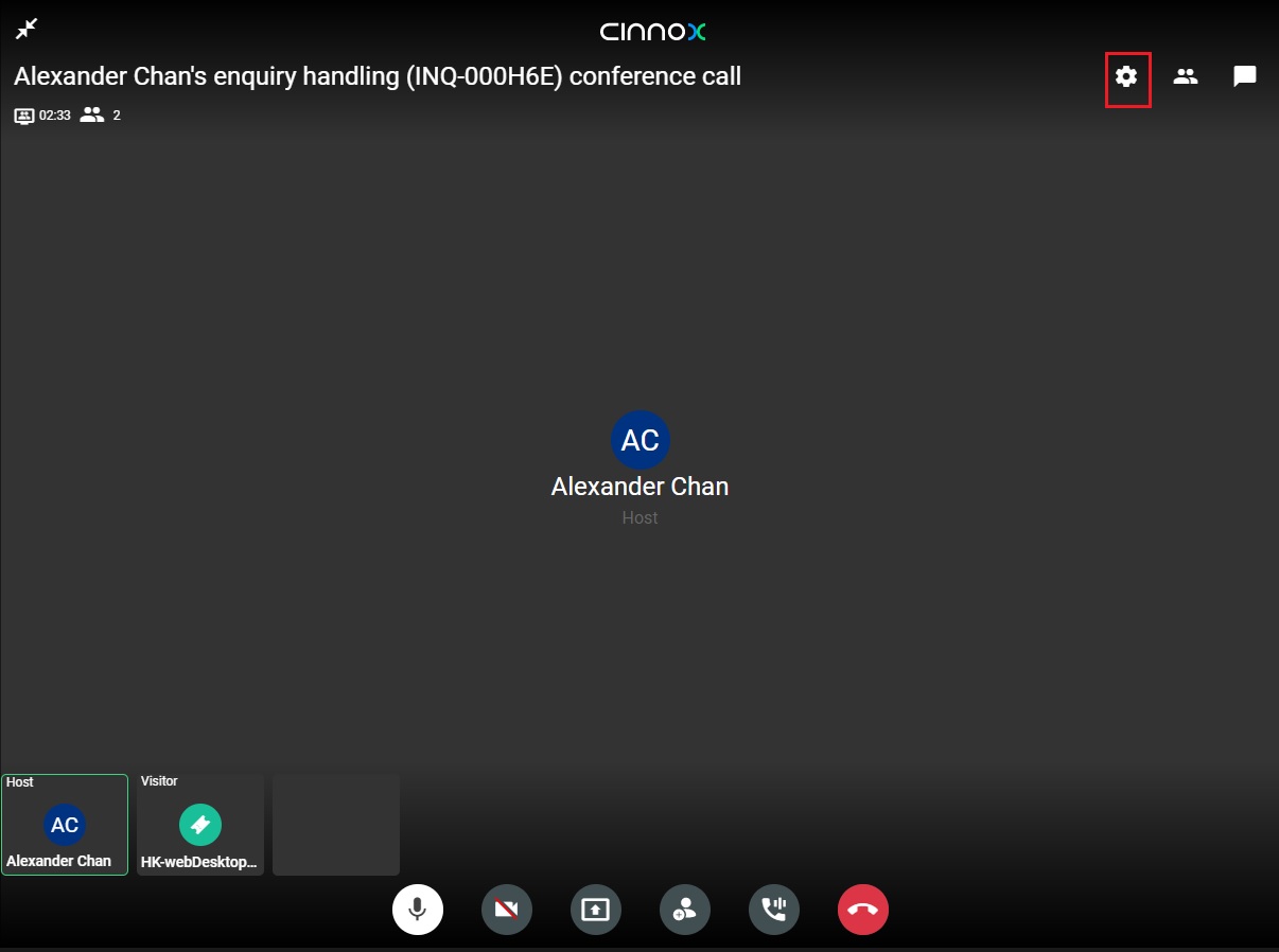 Click the Gear icon located in the Invite participant section of the conference call room.