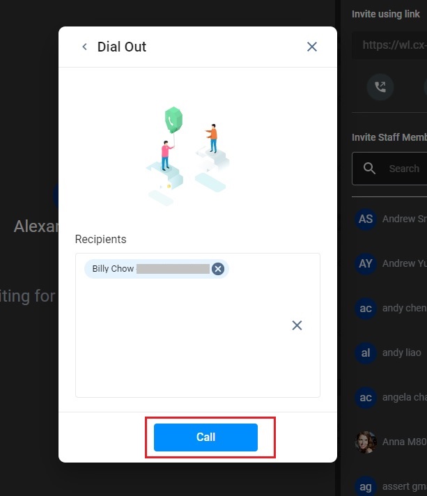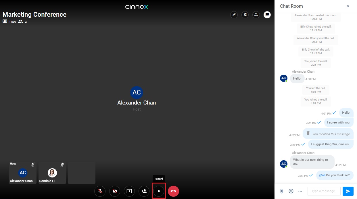 CINNOX then launches a conference call room and notifies the space members to join the conference.