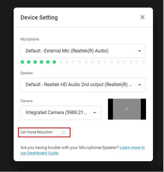 You can toggle on or off to enable or disable the Call Noise Reduction.