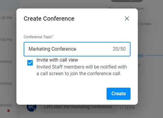 On the Create Conference pop-up window that will appear, type the conference topic.