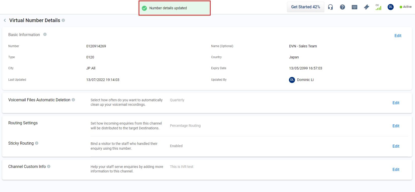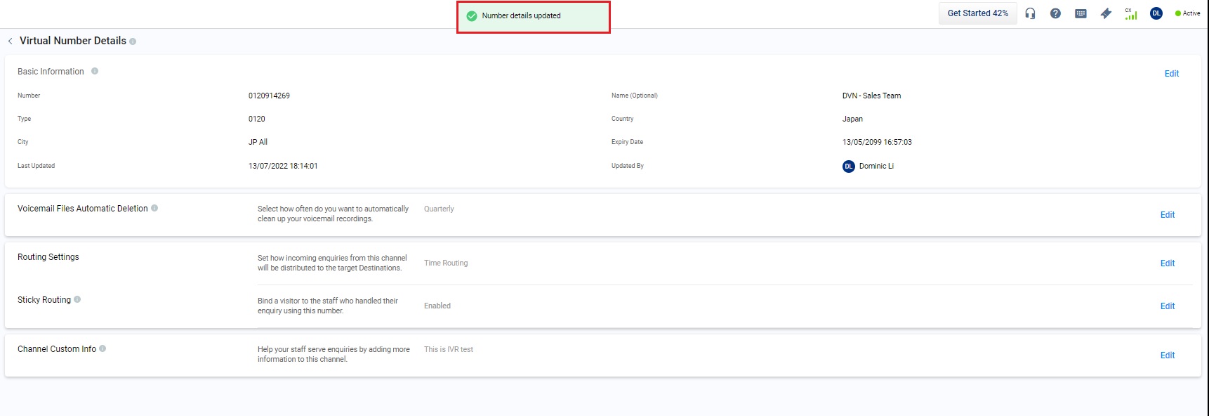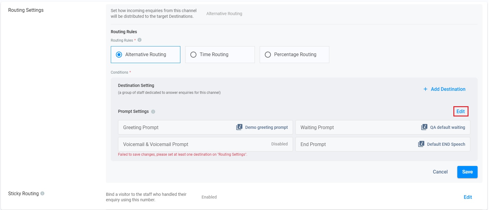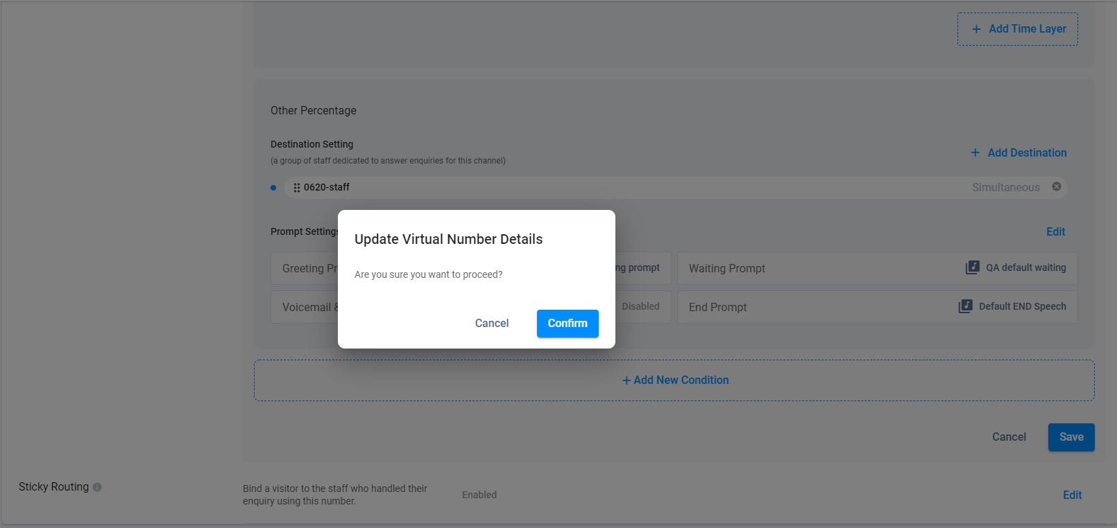 In tandem with the defined routing rules, namely, Alternative Routing, Time Routing and Percentage Routing, add prompts for different call stages, bringing your customers and visitors a more personalised and interactive call experience.