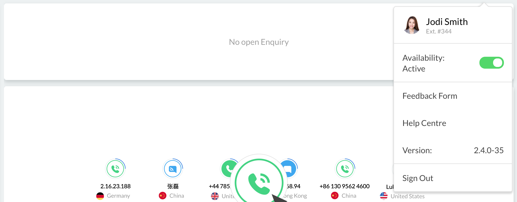 When you sign in for the first time, CINNOX automatically sets your availability status to Active. The next time you log in, CINNOX will base your availability status on the status before your last logout.