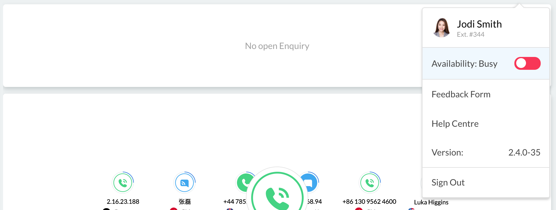 CINNOX lets you set your availability status on your Dashboard or mobile app to indicate your readiness to accept incoming enquiries.