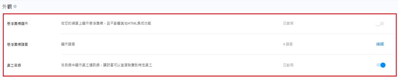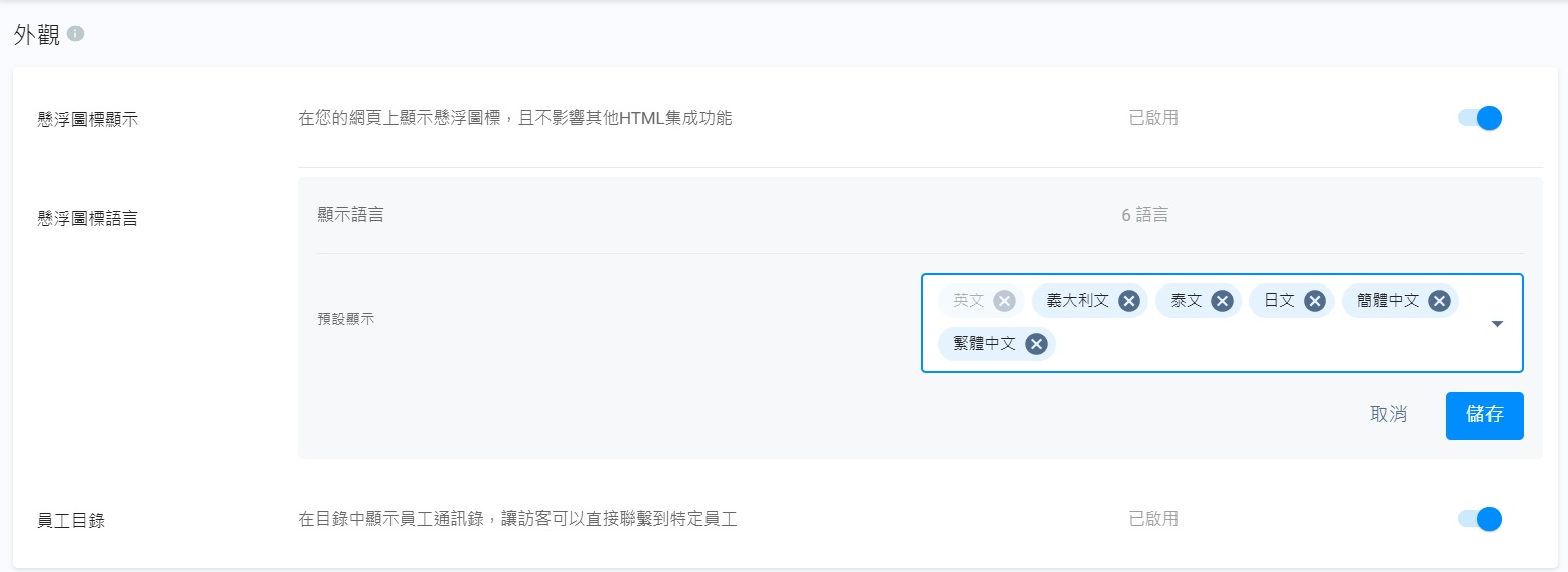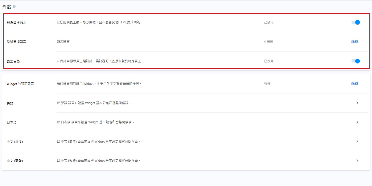 如需根據不同語言配置網頁懸浮圖標,請參考自定懸浮圖標外觀部份。