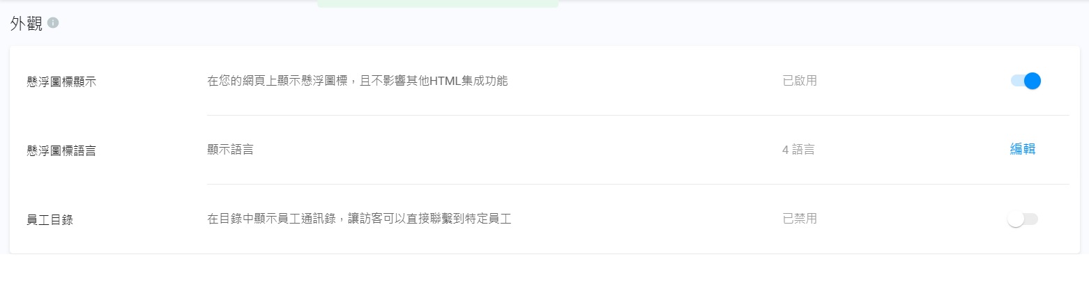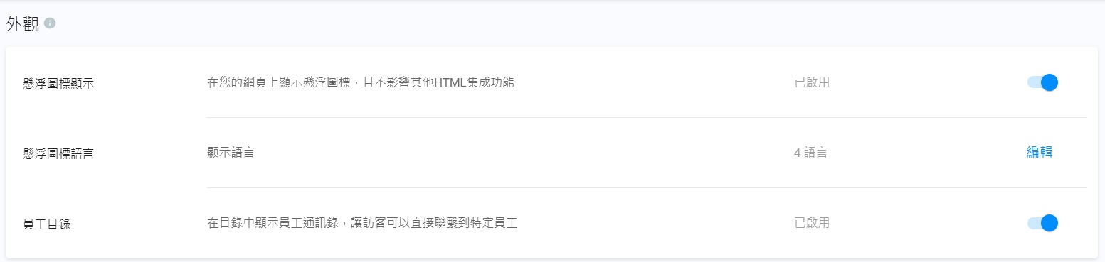 系統已預設啟用懸浮圖標顯示。當懸浮圖標安裝在你的網頁上,它會自動顯示在你的網頁上,方便員工,藉聊天或通話提供客戶服務。