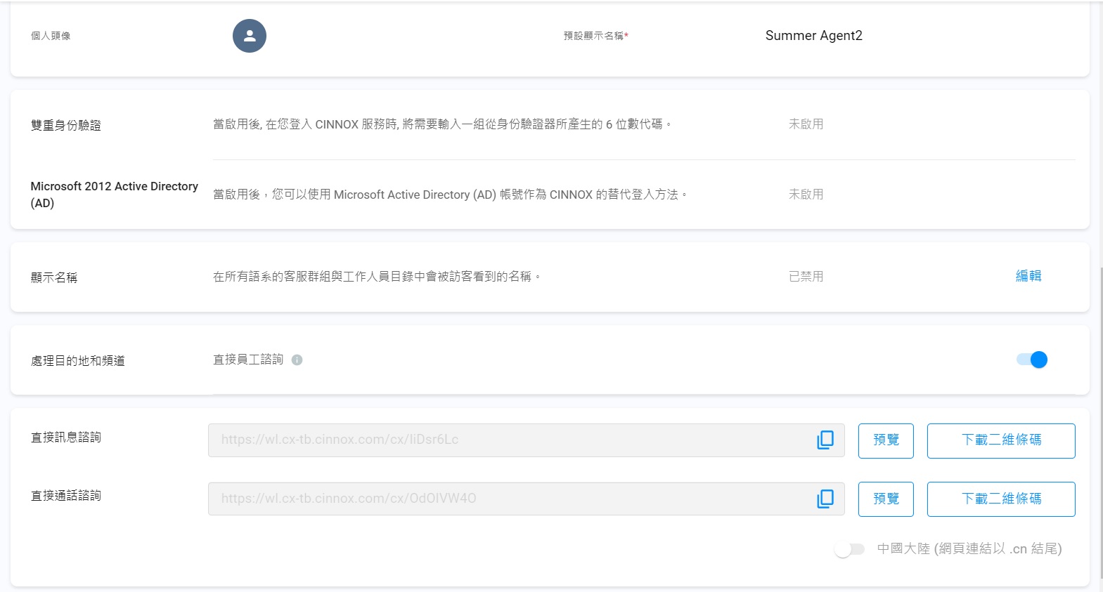 - 在需要加入到員工目錄的員工裡,點擊員工帳號資訊,在處理目的地和頻道,將開關切換為啟用。
