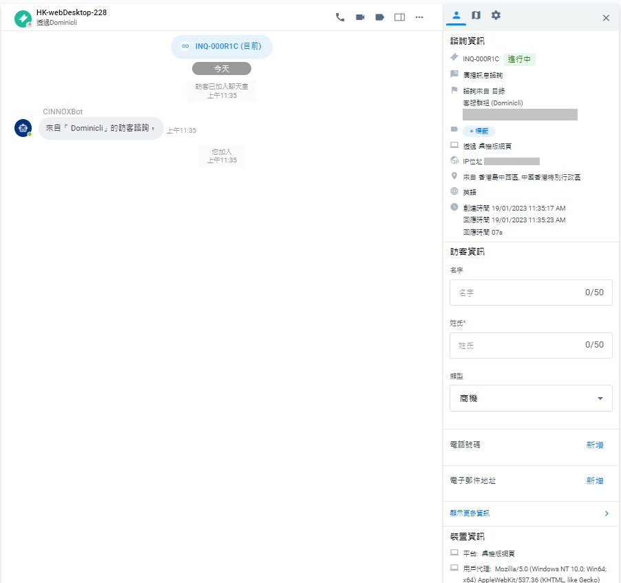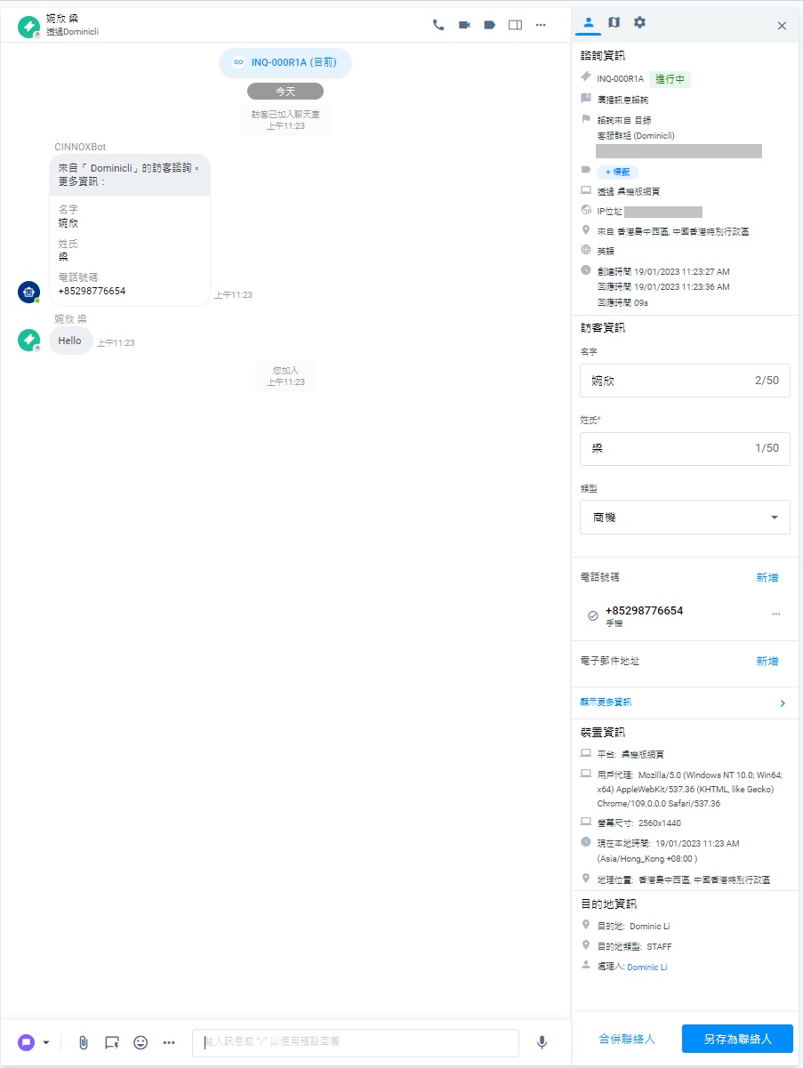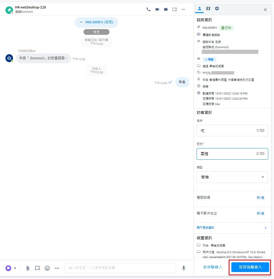 無論有沒有資料,對於新訪客,你可以在處理他們的諮詢時,填上並儲存他們的資料,作另存為聯絡人。