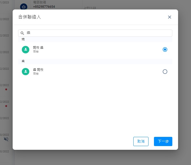CINNOX提供合併聯絡人這功能,藉經核實的電話號碼,從通訊錄中辨認出相同的聯絡人資料。假如你知道它們屬於同一聯絡人,你亦可以自己搜索聯絡人作合併資料。