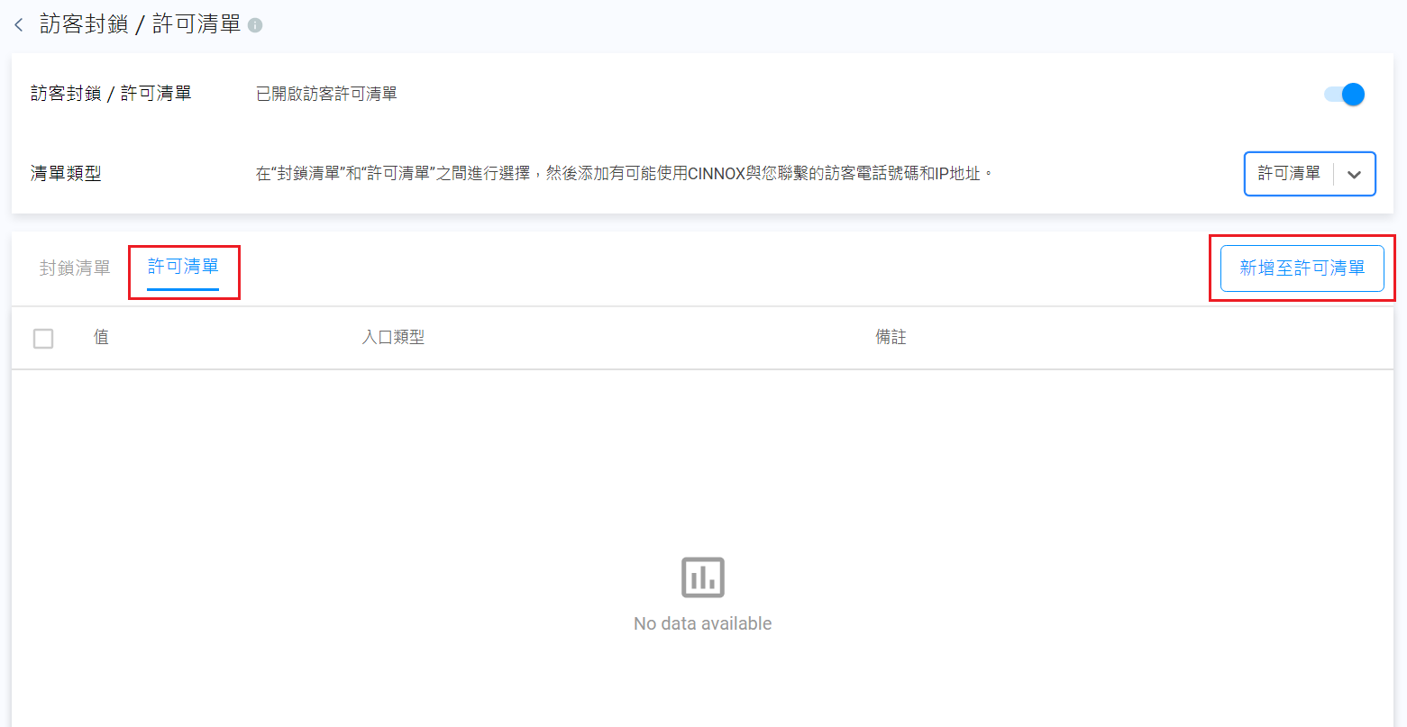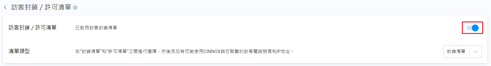 訪客號碼和IP封鎖清單/許可清單是一項安全功能,藉檢查和篩選電話號碼或IP地址,限制與你公司聯絡的訪客。
