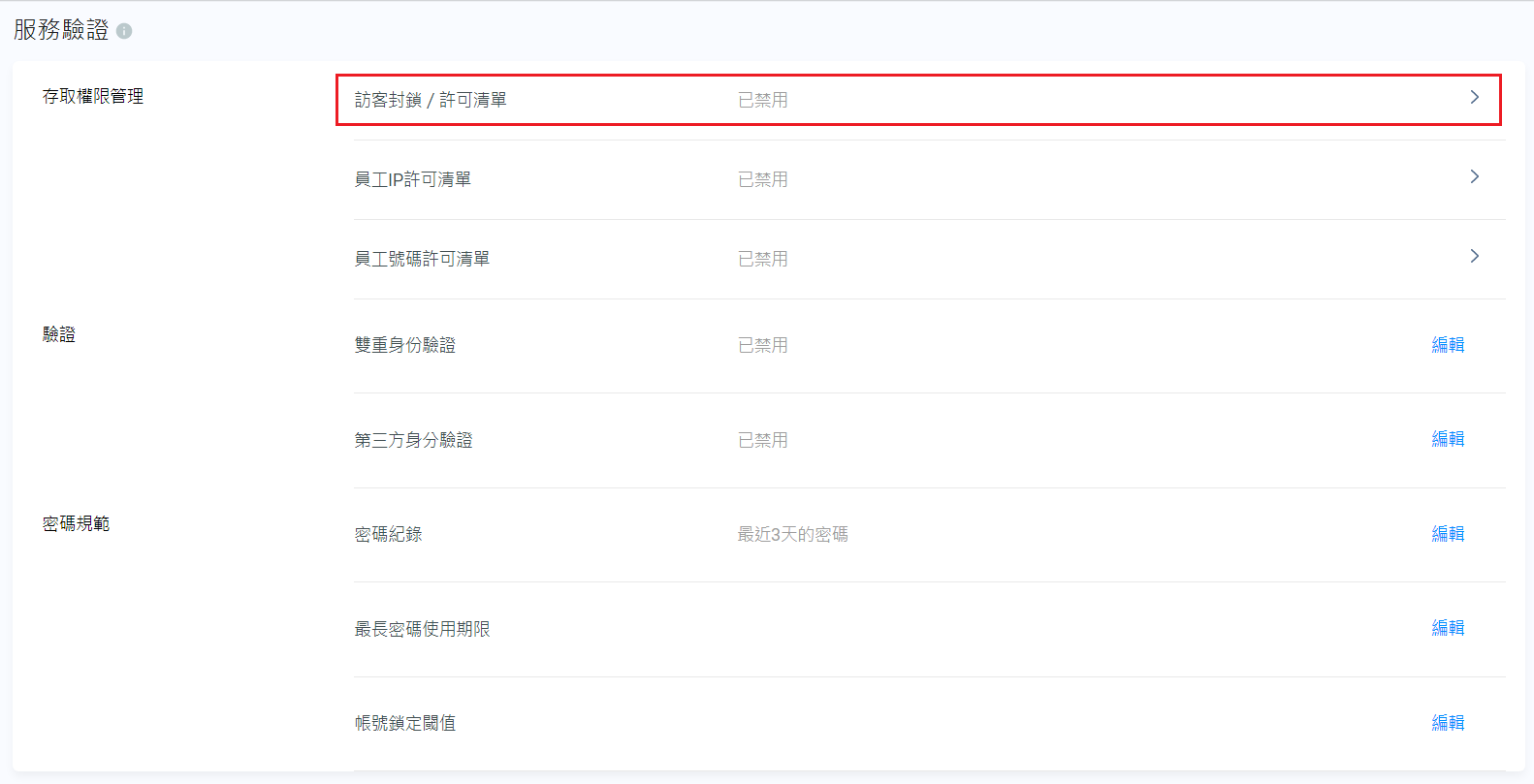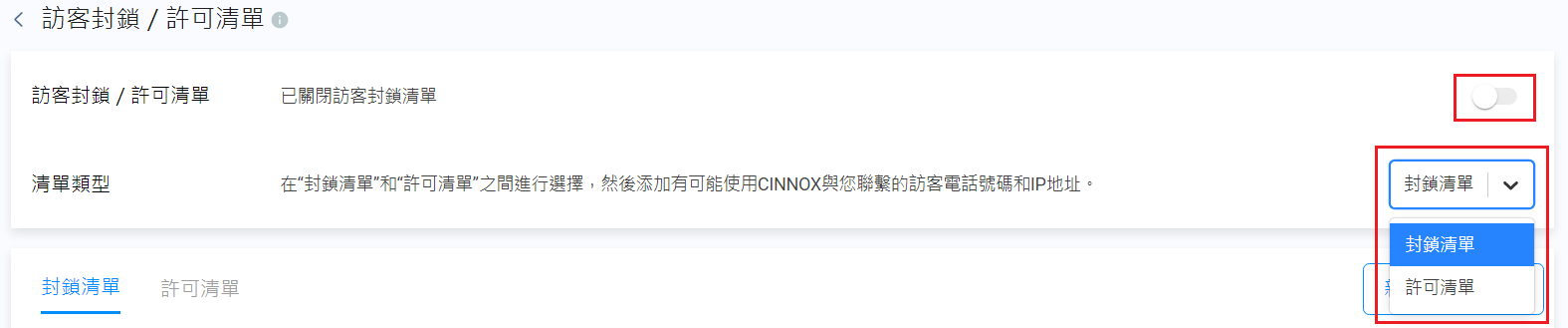 - 在訪客封鎖/許可清單頁,點擊封鎖清單或許可清單。